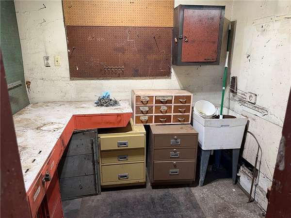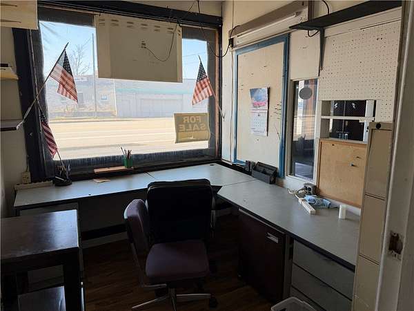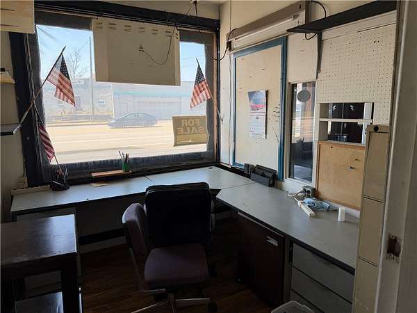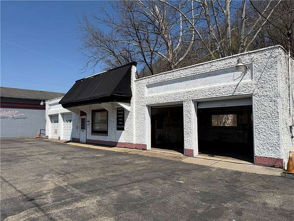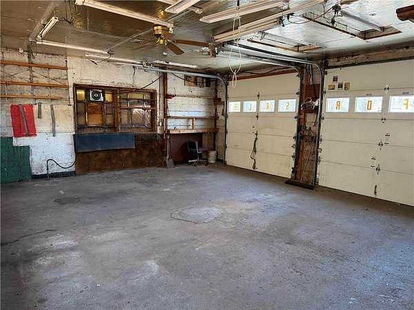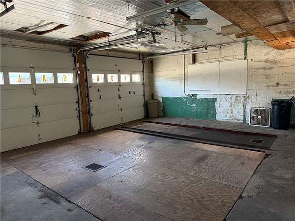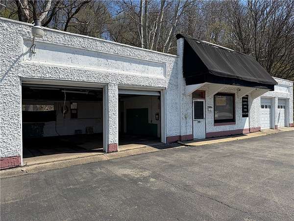 Est $1,254/moHigh visibility and traffic! This building features four garage bays, two on each side. Each pair measure 23' x 20' with 8' doors. . Enter in between the garages and you'll find a 20' x 7' reception area. To the right is the office area and half bathroom. The right side garages include a nice 7' x 7' tool room. Large basement with plenty of storage. Zoned C-2. Extra lot included in sale.