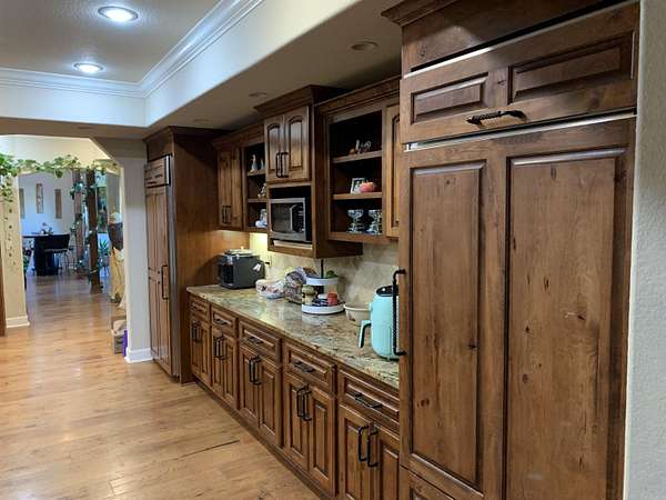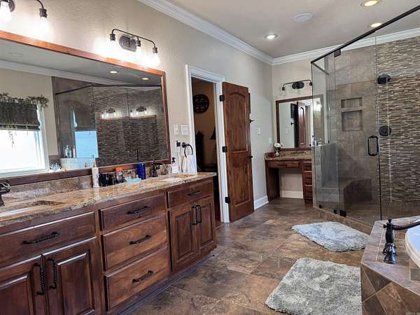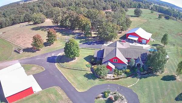 Welcome to your dream ranch -- Come through a gated entrance to a stunning 5436 sq ft luxury residence set on 252 rolling acres of prime land, thoughtfully designed for both upscale living and equestrian or cattle operations. This rare offering combines timeless elegance, functional ranch infrastructure, and modern convenience in one extraordinary package. Some features are 5 bed/5.5 bath that boast 2 primary suites, large office, pantry, laundry room, formal dining room, windowed sun room and a separate screened-in porch. Additionally, this kitchen is a chef's dream with an island perfect for entertaining, upscale GE Monogram appliances, and custom cabinetry. Outside you'll find a beautiful saltwater pool, hot tub, covered patio, superb landscaping, 7 stall barn with lots of extras, covered arena, roping arena, shop, equipment barn, ponds in every pasture, and 2 bd/1 ba guest house or rental apartment! See agent remarks for extensive features list. Charming 1305 sq ft 2 bed / 1 bath barndominium, ideal for guests, ranch hands, or rental income is tucked away on the backside of the property. It has a balcony with views of a pond and most of the pastures.