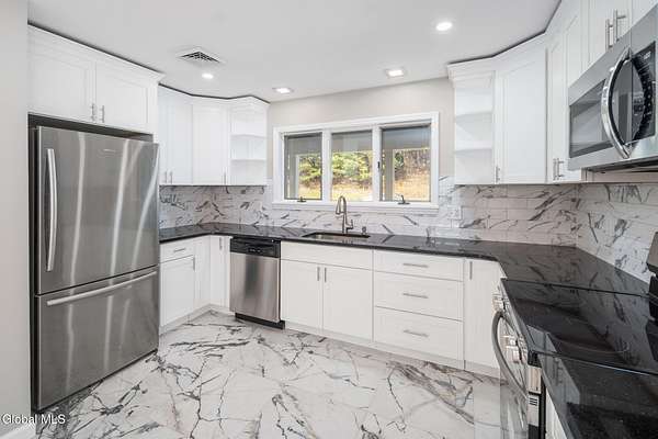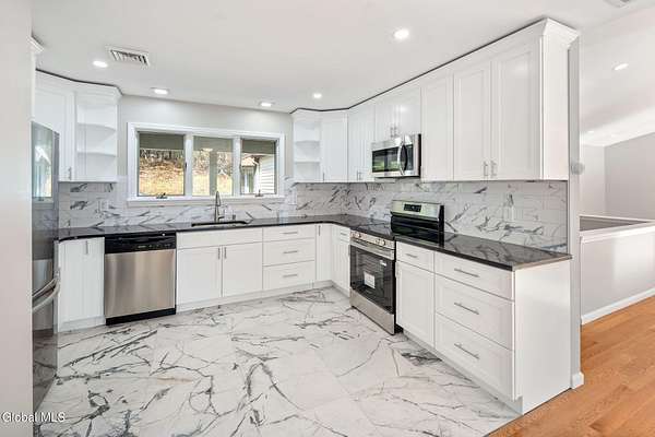 Welcome to this spacious multi-level home which has been completely redone offering comfort, and plenty of space to personalize. The main floor features a large open living room with glass doors leading to the back deck overlooking 6+ acres. Huge kitchen ideal for gatherings, with a laundry room and half bath conveniently located off the kitchen with access to a large two-car garage. On the main level you'll find the primary bedroom suite along with two bedrooms, and a second full bath. An open stairwell connects the main level to the lower level leading into a spacious Family room with triple sliding glass doors. along with two bedrooms each with sliding glass doors to the backyard, and a full bath. A den or perfect for possible theater room, bar or entertainment area just off the family room. Outside, enjoy an expansive back deck and a sunroom. Located in a desirable Coxsackie neighborhood, easy access to exit 21B Thruway (5 minutes 3.8 miles) Albany (30 Minutes 25 miles) NYC ( 2 hrs. 117 Miles) HSA Home Warranty included!!!
