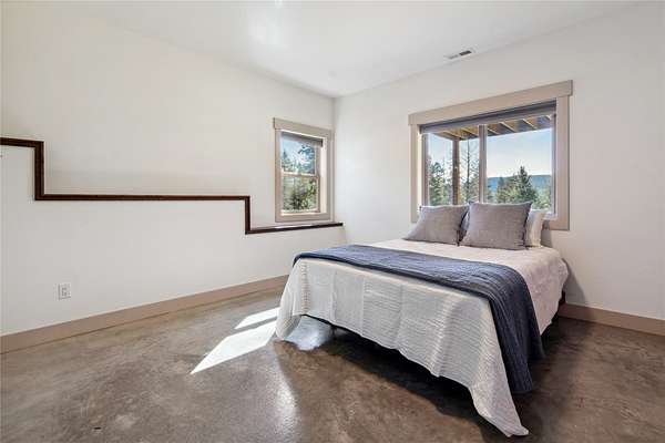 Escape the Ordinary - Embrace Montana Living! NO COVENANTS, NO HOA, Scenic Cooridoor Zoning! Nestled in a scenic setting with stunning mountain views and minutes from McGregor Lake's shores, this beautifully crafted 5-bedroom, 4.5-bathroom home offers 3,200 square feet of finished living space, plus a 512 square foot studio apartment above the garage and an additional 385 square feet of enclosed, dry storage space beneath the home-perfect for future expansion or extra storage. The main living area showcases high-end finishes including circle sawn wood flooring, custom railings, and vaulted ceilings. The kitchen is a showstopper with cherry wood cabinets, a custom granite island, knotty alder trim and doors, a custom hood and pantry door, double oven, gas range, dishwasher, laminate countertops, and a stunning copper farm sink. Large windows flood the space with natural light. The spacious primary en suite features a walk-in closet, reclaimed barn wood accent wall, dual vanity with a custom knotty alder cabinet, natural stone shower, a separate water closet, and is roughed in for a luxurious soaker tub (under tile) . The lower level includes four additional bedrooms, two full bathrooms with dual vanities and vintage mirrors, a second living room, custom-painted concrete floors with radiant floor heat, and both a utility room and multiple storage closets. A thoughtfully designed mudroom with custom built-ins leads into the attached 3-car garage, which includes a utility sink and is roughed in for a gas heater. The studio apartment above the garage is partially finished with a completed 3/4 bath, additional 220 amp service, and rough-ins for a kitchenette-ideal for guests, rental income, or creative space. Enjoy outdoor living on the large covered front and back decks overlooking a fully fenced yard with a chain-link fencing, platform treehouse, playground, and zip line. The back deck features tongue and grove ceilings, Trex decking and custom railings, overlooking stunning mountain views. The property also includes a shed, custom reclaimed wood siding from an Eastern Montana grain bin, central A/C, gas forced air, and a 500-gallon propane tank. High-efficiency insulated concrete form foundation construction offers durability and energy savings. With endless custom details and room to grow, this one-of-a-kind property is perfect to enjoy Montana living at its finest.