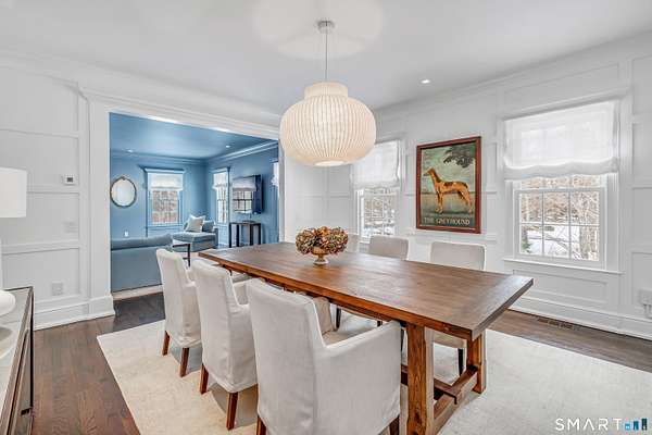 Located in the coveted Greenfield Hill neighborhood, this exceptional property offers the perfect blend of weekend retreat and everyday living, just 60 miles from Manhattan. Set on over 2 private acres with classic stone walls and professional landscaping, the home welcomes you with a dramatic two-story foyer and 9-foot ceilings throughout. The designer living room flows seamlessly into a gorgeous dining room with custom paneling and continues through a gallery-style hallway to the stunning gourmet kitchen, featuring Sub-Zero refrigeration, Wolf gas cooktop, wall oven, pantry, and high-end finishes. Just off the kitchen is a charming shiplap mudroom with direct access to the garage. The kitchen opens to a cozy family room accented with newly added wood beams and fireplace. French door sliders lead to the backyard, creating an effortless indoor-outdoor connection. The second floor features a serene primary suite with a spacious walk-in closet and a spa-like bathroom offering a double vanity and oversized shower and . Additional spacious bedrooms share an impressive oversized full bath, and a dedicated laundry room completes the level. The above-ground finished lower level provides flexible living space, ideal for a home gym or additional entertaining area. Outdoors, the property truly shines with a gunite pool surrounded by bluestone, above-ground boxed gardens, and a level lawn space perfect for entertaining, recreation, or quiet relaxation, all framed by mature landscaping..