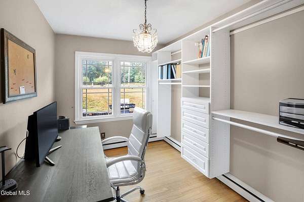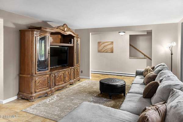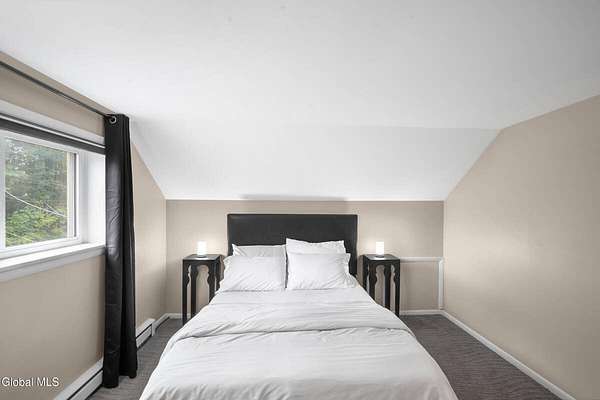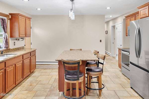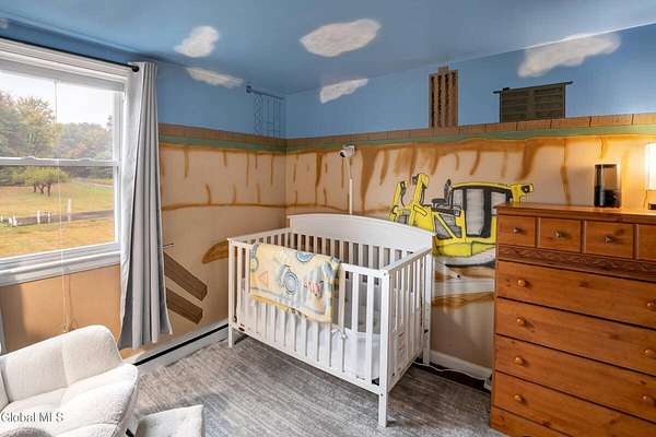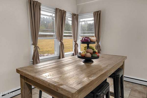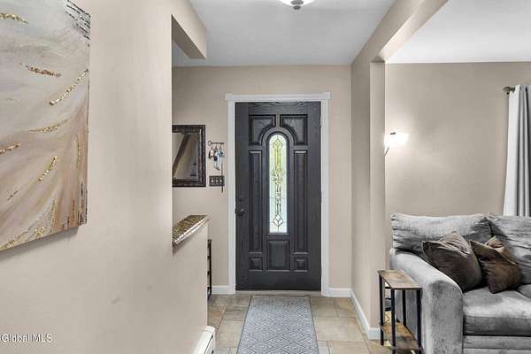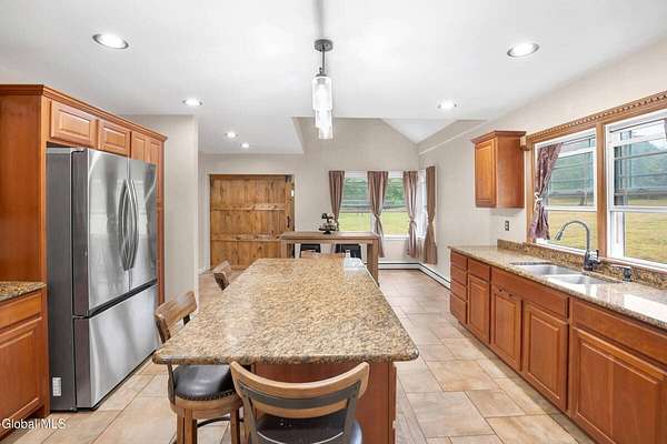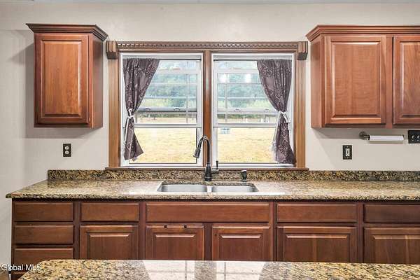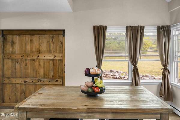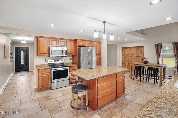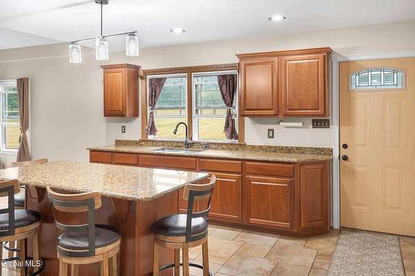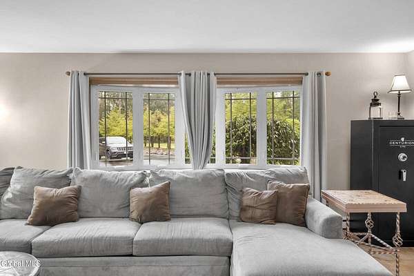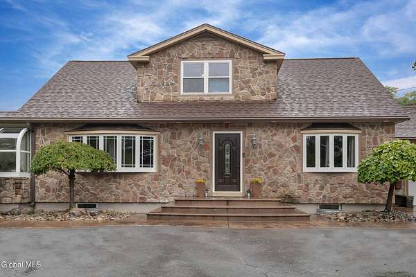 Charming expansive 5 bedroom, 2 bath home in Altamont -in the Guilderland school district. Set on 3.22 serene acres, this beautifully updated Cape blends timeless charm with modern living. Step inside to find a bright, open floor plan designed for today's lifestyle. The spacious living room flows seamlessly into the updated kitchen, perfect for everyday living and entertaining. The first floor features a versatile layout with a large bedroom, home office, and a full bath, making it ideal for guests or single-level living. A sunroom addition with a private entrance offers endless possibilities-perfect for a home office, studio, or small business.Upstairs, discover four generously sized bedrooms and another full bath, providing plenty of space for everyone. Additional highlights include: 2-car heated garage with radiant heat, Stamped concrete patio and convenient circular driveway. Peaceful acreage offering privacy and room to roam -just minutes to village amenities, parks, and commuting routes. Seller is relocating and motivated to entertain offers.