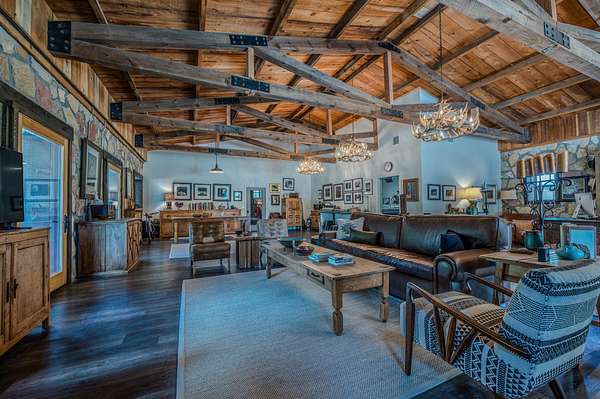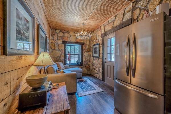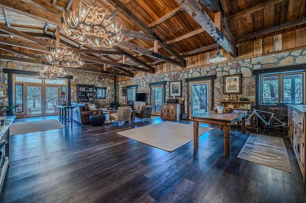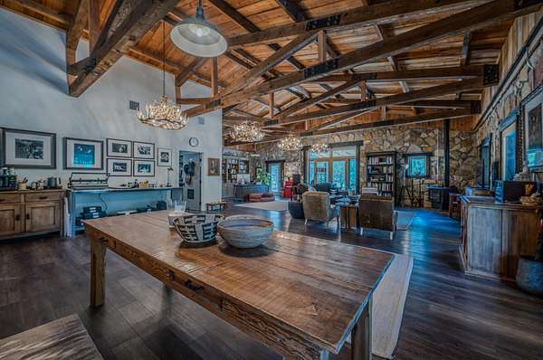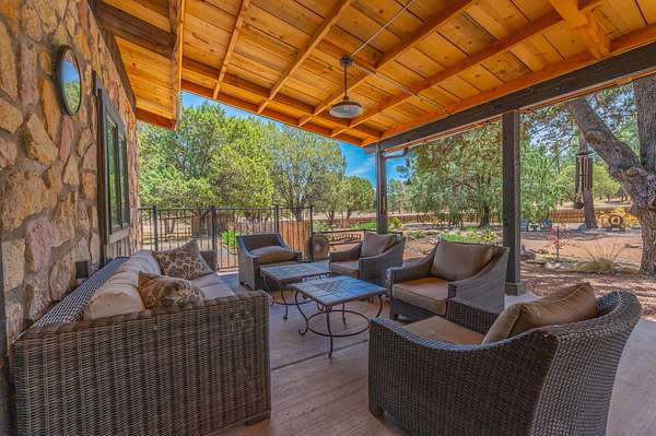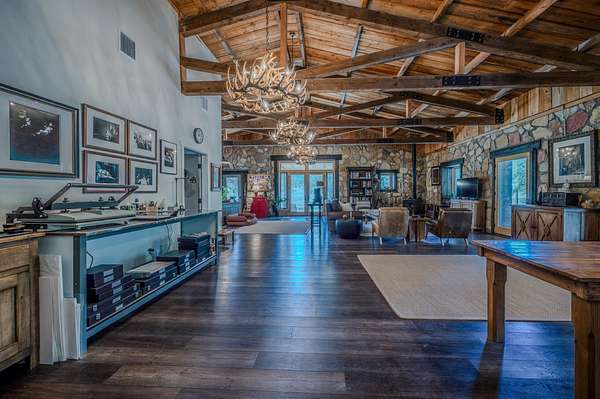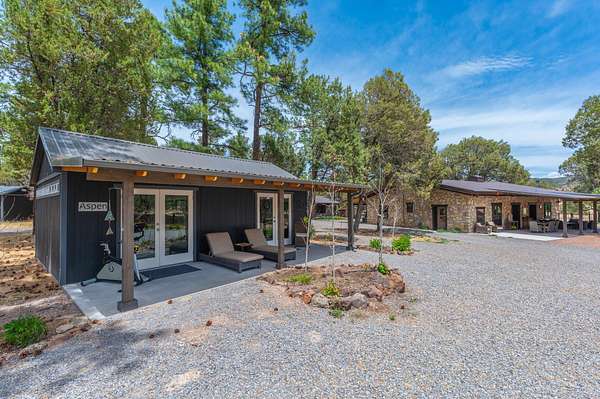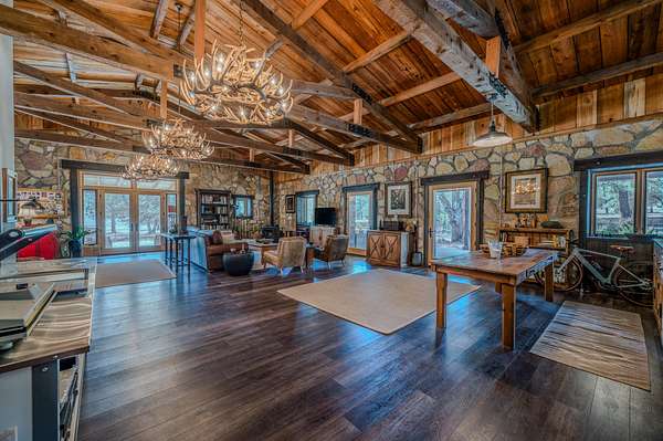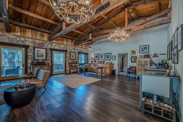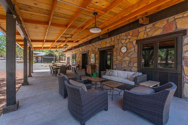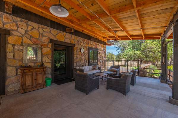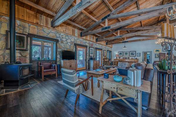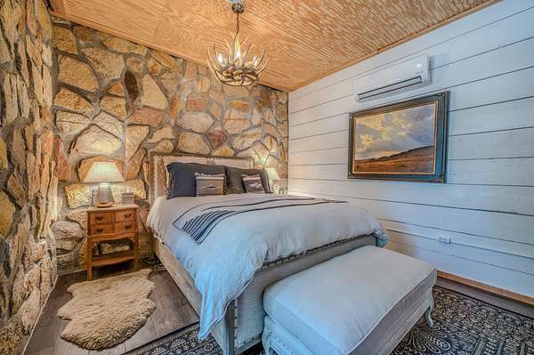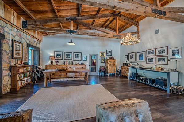 Rock Studio Lodge- One of the most creative conversions in the southwest U.S. turning a four-stall horse barn into an studio-entertaining space that currently features a dark-room (easily converted to kitchen), indoor and outdoor entertaining spaces and a one bedroom, one bath apartment with its own entrance. Utilizing stone walls, the rustic beams from the barn and modern finishes, this is a one-of-a-kind space that will be the topic of discussion among all visitors.