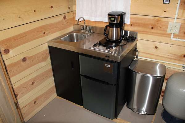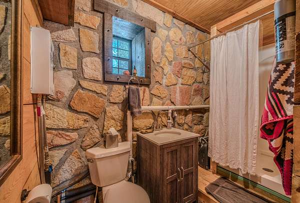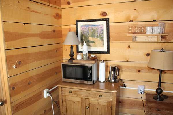 Elk Meadows Cabin-Beautiful wood interior one one-bedroom studio cabin with a 3/4 bath, its own little kitchen dinette and a sitting desk on the far Northeast corner of the property makes a perfect little getaway.