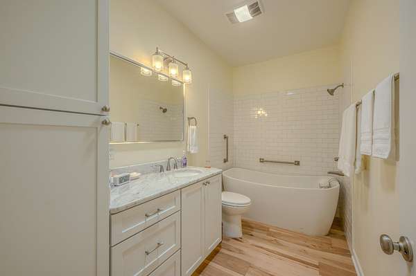 Oak Creek-The guest quarters, just recently completed in September 2024, is a simple but elegant one-bedroom one-bath space with a beautiful living area. In addition, there is a large walk-in closet, laundry area, and desk space, all very creatively tucked in, making it a highly functional dwelling at just over 1000 square feet.