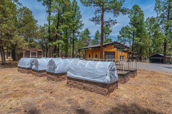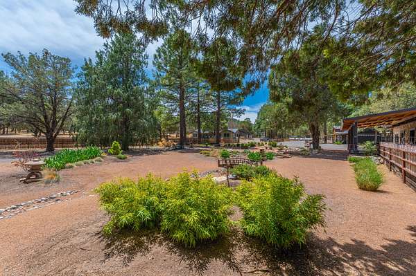 This property is a true gardener's paradise, featuring 12 raised beds with a variety of vegetable and flower plantings and 12 fruit trees, including apples, pears, peaches, cherries, and apricots. The piece de resistance is an 8,000 sq. ft. Zen Garden, graced with Japanese maples, bamboo, ginkgo trees, and native grasses. Native ponderosa and juniper trees further enrich the landscape, providing a seamless blend with the surrounding natural environment.