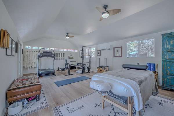 Aspen-No need to go and find a gym in town when you have this one already set up on the property. Stream your favorite workouts and make sure you get any additional exercise you didn't already get enjoying this wonderful property and the adjacent forest.