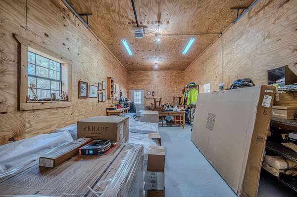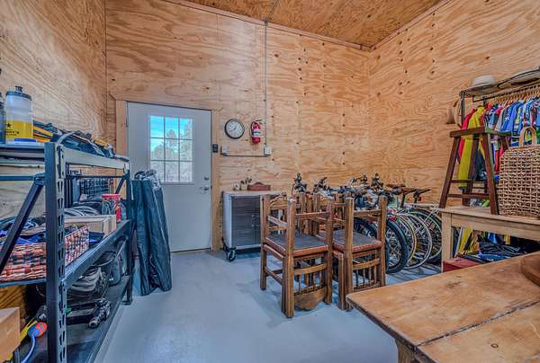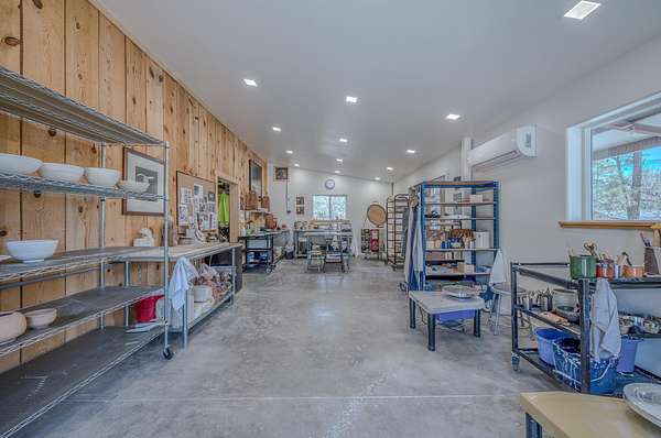 Studio with RV Garage- Fully enclosed and covered parking for a small RV or travel trailer with automatic garage door. The pass-through door leads into a beautiful, bright, vibrant studio space that can be utilized in numerous ways. A beautiful porch out front to hang out and enjoy the fresh mountain breeze.