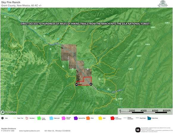Bring your Polaris, Cam Am or Kawasaki because this incomparable Sky Fire Ranch is bordered on three Sides by the +/-3.3 million acres of the magnificent Gila National Forest with your unique private back gates accessing directly into the +/-100's of miles of side-by-side trails that compliment the Gila, including the Continental Divide Trail!