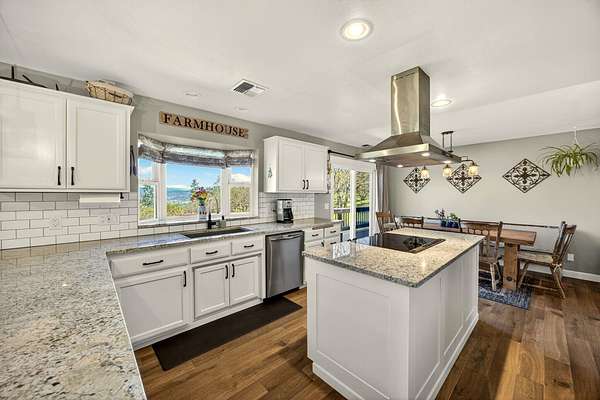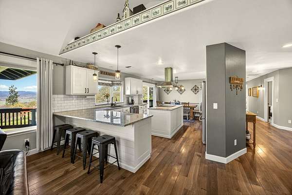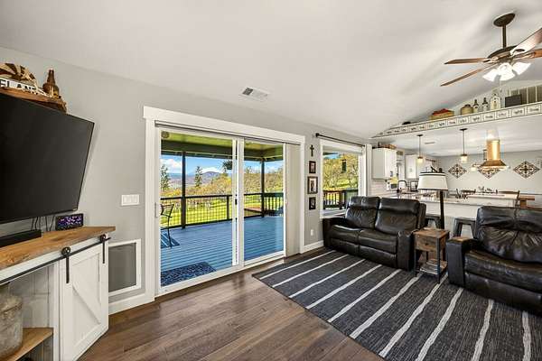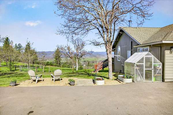 It's a top of the world feeling EVERY DAY, at this incredible location. With spectacular views that include distant mountains, trees, pastures and the valley below, you'll never grow tired of taking it all in, day or night. The changing array of scenery and lighting is something to behold! You can enjoy it from every window of the home as well as the large deck or under the open sky, the choice is yours! The variety is endless with this property~ from the views to the fenced pastures to a chicken coop, green house & garden area to the bountiful fruit trees, this property indeed has it all! Inside, you'll enjoy the remodeled beauty of a modern & inviting home, with vaulted ceilings, striking yet durable LVP floors, cozy woodstove, granite kitchen counters w/ plenty of cabinetry & pantry, stainless steel appliances, terrific, tiled baths and more. Store all you RV vehicles on the gated,clean level asphalt drive w hookups. Conveniently located minutes from shopping and town. Tour today