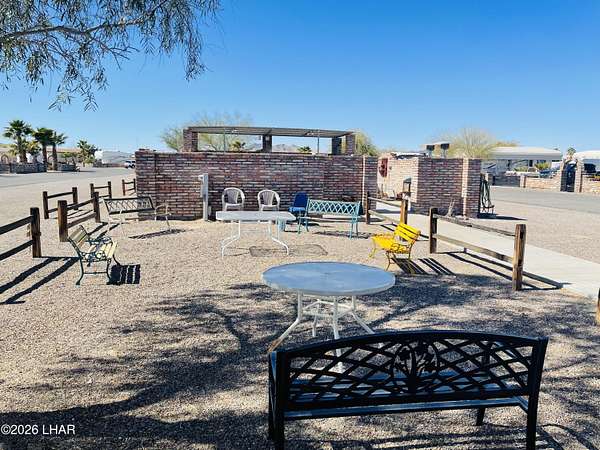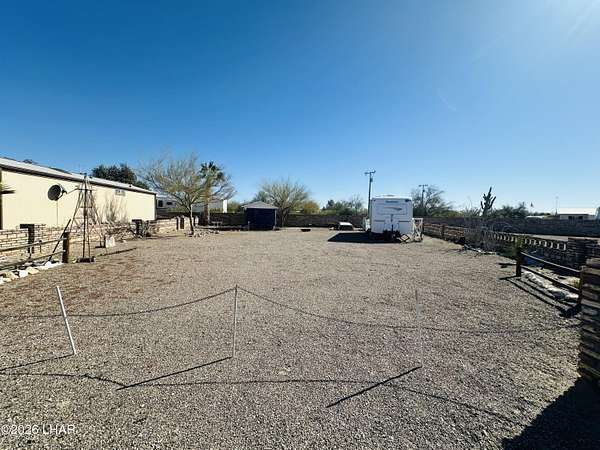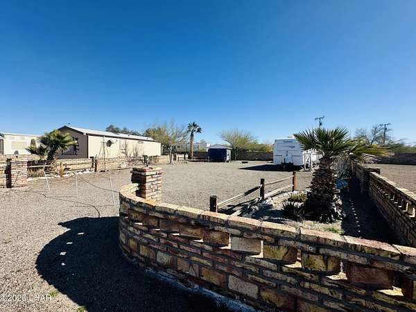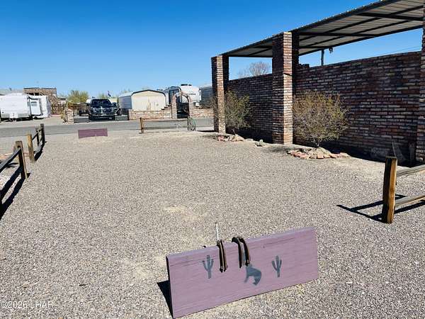 .14 acre private, lot surrounded by Mexican brick on 3 sides with panoramic mountain views located in the desirable FIVE STAR RESORT CO-OP. This lot features 1 RV hookup with 100amp panel, a side x side carport, a storage shed and low maintenance desert landscaping that includes palm trees and shade trees. *$900.00 annual dues include water, sewer, garbage and common area maintenance. FIVE STAR RESORT CO-OP offers clubhouse events all year around including BBQ's, Horseshoes, Holiday parties and so much more. Snowbirds or all year around... you'll feel at home in FIVE STAR RESORT CO-OP. Call today! **Travel trailer does not convey.