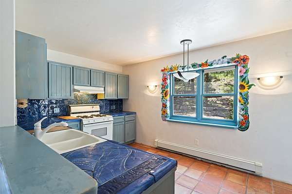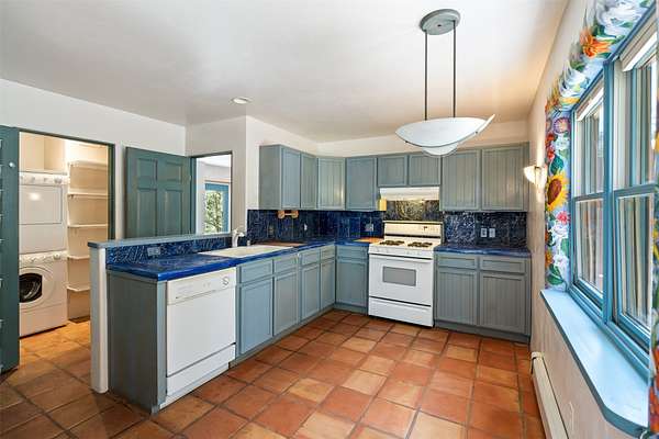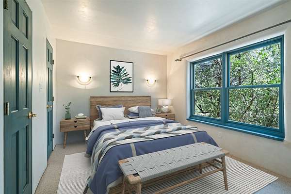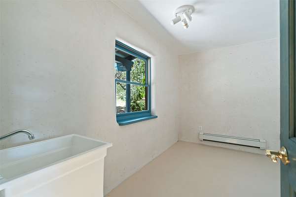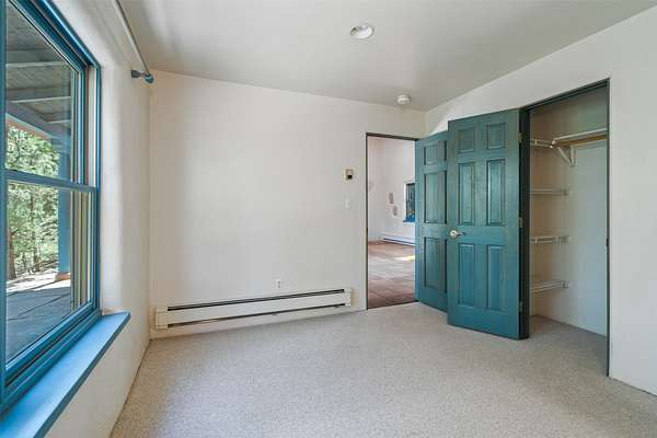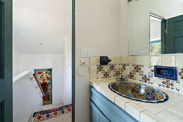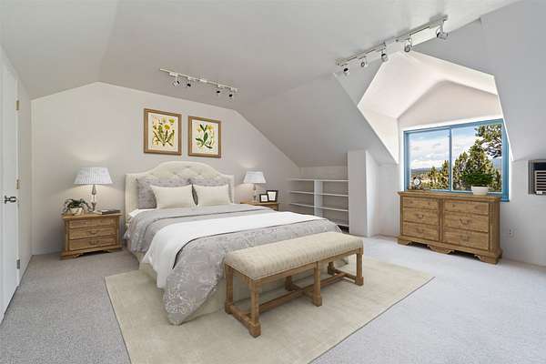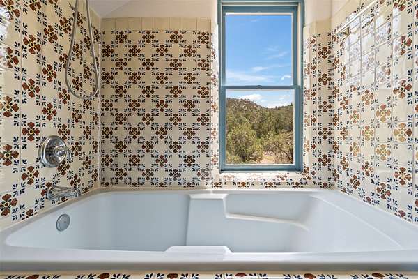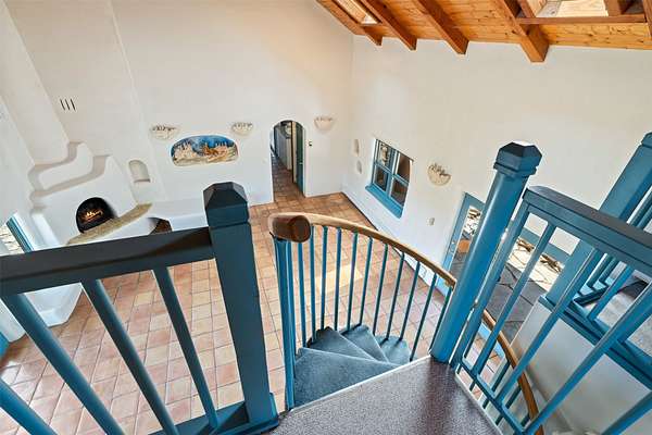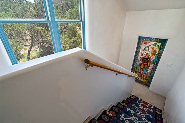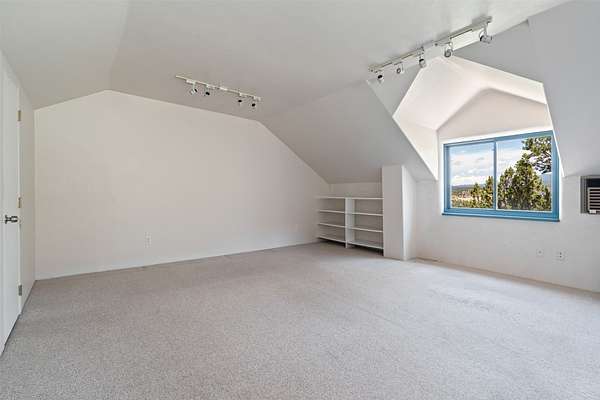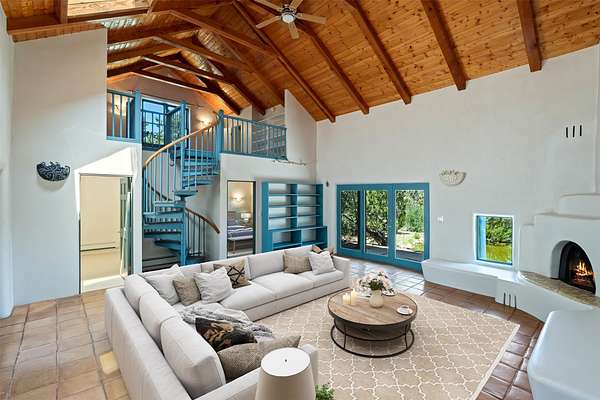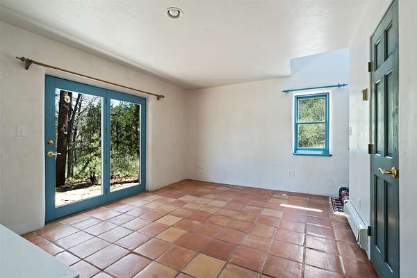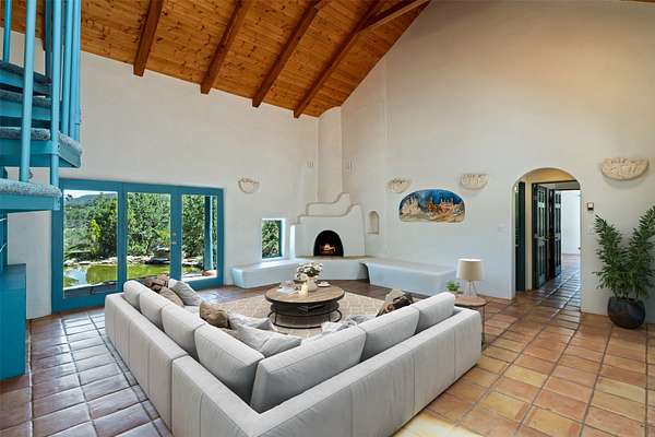 Nestled in the serene hills of Canoncito, this 3-bed, 2-bath Rastra home sits on 5.99 private wooded acres with a thriving koi pond, private well, and sweeping Sangre de Cristo views - offering a rare value-add opportunity. Owner-built and on the market for the first time since 1998, this home blends craftsmanship and artistic detail throughout. Soaring ceilings, a striking fireplace, and expansive windows define the main living space, while a lofted study/library offers a quiet retreat. The home was intentionally designed to be divided into two living areas, with pre-installed utility connections ready to support the setup. A workroom with slop sink, two storage sheds - including one with an electrical backup generator - add functionality. With a new septic system recently installed and an updated well system, this property offers a strong infrastructure base to build upon. Just 10 minutes to Eldorado and 25 to downtown Santa Fe, with nearby trails and 100 mbps internet available. A peaceful retreat and a rare chance to add real value.