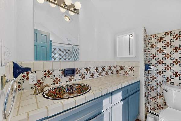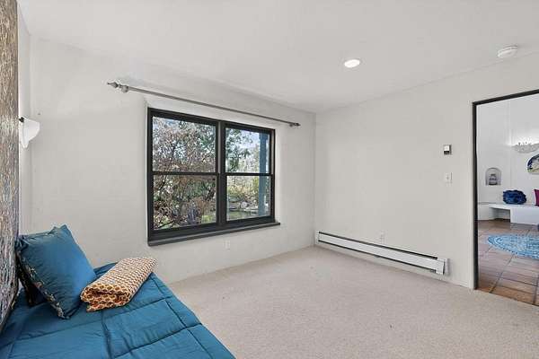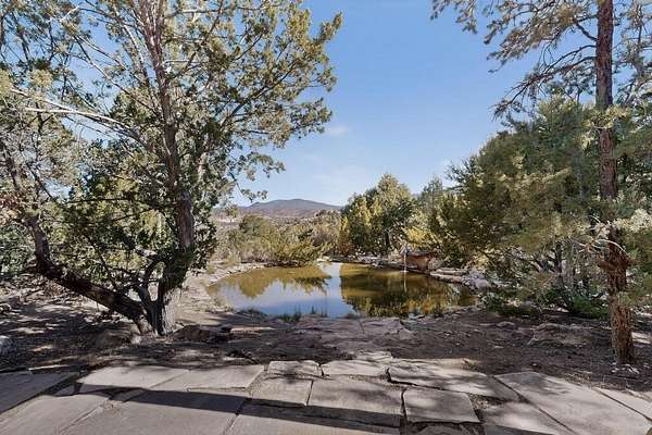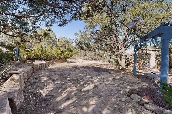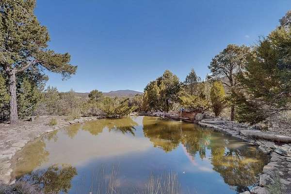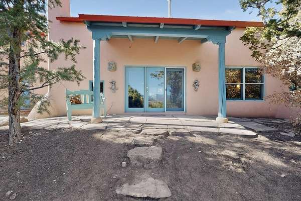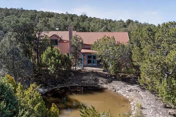 Surrounded by the open skies and hills of Canoncito, this custom-built 3-bedroom, 2-bath home showcases breathtaking views of the Sangre de Cristo Mountains, with artistic details flowing throughout the home and property. Thoughtfully constructed with Rastra construction for improved insulation performance and energy efficiency, the builder and artist designed the home to capture the changing light throughout the day through the large window fronts and skylights. The living room welcomes you with a soaring ceiling, skylights, and windows that fill the space with natural light, while a kiva-style wood-burning fireplace creates a warm and inviting gathering space. Above, a versatile loft provides the perfect spot for an office, library, or additional living area. The primary bedroom is located on the upper level, separated from the guest bedrooms and main living areas, and includes a private bath. With existing utility connections, the space also offers potential for semi-independent living with minimal modifications. One of the guest rooms features a utility sink and 240V outlet, ideal for hobbies, projects, or a dedicated workspace. Outdoors, the property sits on 5.99 acres and includes a koi pond and two storage sheds, one of which has an electrical backup generator, along with ample parking and overflow parking for guests. This rare home offers privacy, craftsmanship, and stunning natural surroundings, with plenty of space to relax, entertain, explore, or simply enjoy the scenery. Conveniently located approximately 20 minutes from Santa Fe and just 10 minutes from El Dorado, with supermarkets, restaurants, a gas station, and a post office nearby.