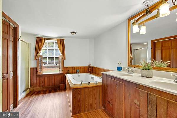 Welcome home to this beautiful 1800s historic farmstead nestled in Michaux Meadows in the foothills of the Blue Ridge Province range. As you walk up the stone walkway, you are greeted with a large landscaped patio area with a fire pit and expansive wrap-around porch. From the peaceful porch you have views of your carriage house, outbuildings, and the mountains in the backgroud, a perfect place to enjoy a cup of coffee. From the moment you step inside, you see the historic features and charm of the original stone fireplace as well as the hand hewn exposed beams. The living room also features chair rail and wide-plank original wood floors which are carried throughout the home. A small half bath with a stone feature wall is conveniently located in the living area. As you move to the family room you're greeted with more exposed beams and built-ins providing a comfy space to relax with family and friends. Off the family room is a laundry area and mudroom with access to the backyard for convenience. There is a butler staircase that takes you to the second level as well. As you step up into the kitchen, you are flooded with light from your valuted ceiling. The eat-in kitchen and dining area features updated cabinets, a farmhouse sink, and a feature window. This open concept kitchen provides plenty of room to cook and entertain. As you climb the stairs to the second level you have two spacious bedrooms and a large bathroom with double sinks, a stall shower, and jetted soaking tub/spa. Off the second bedroom you have a large walk-in closet. More natural light floods this level and off the bedroom you have a loft space with stairway access to your kitchen below. A perfect spot for reading, an office, or even a transitional area for relaxing. As you make your way outside there is a cottage complete with a separate entrance featuring baseboard heating and carpeting. This main level bedroom can be used as a separate space for multigenerational family living or an in-home office. The expansive two-car garage with loft is another transitional space that can be used as a workshop, storage space, or could be convereted to a living space as well. HVAC serviced 2025, AC serviced 2020, and Septic serviced 2023. There are so many possibilities with this home! Conveniently located to all major highways, including the turnpike. Don't miss your chance to see this historic gem!
