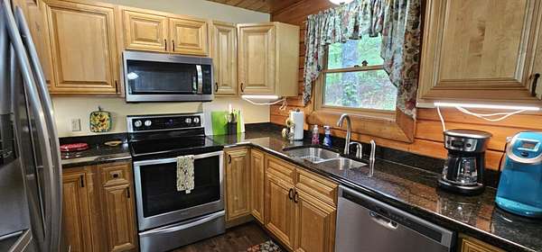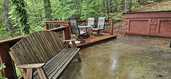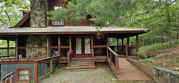 Nestled on a serene 4.8 acre wooded lot in Tellico Plains, Cocobelle Lodge is a grand 4 bedroom, 4 bath retreat perfect anyone seeking tranquility and modern comfort. This inviting home boasts a spacious wrap around deck which is ideal for taking in the natural beauty of the Unicoi Mountains and an out door gas fire pit for memorable nights under the stars. On the interior, the kitchen/dining/living room area is an open floor plan for gatherings. It features a cozy stone fireplace and granite counter tops in the kitchen. This level also includes 2 bedrooms and a full bath. On the upper level you will find two main bedrooms. Each one has soaring celings and their own minisplit heating and cooling systems. The walkout lower level includes a full kitchen, a living room with a wood burning stove, a laundry room and additional sleeping areas. With a proven short term rental history, this property shines as a successful venue for retreats and family reunions. Whether you are looking for a private escape or a rental venue, Cocobelle offers ample space a gorgeous setting and lots of charm. Light restrictions to protect wildlife and property value. Shared well with maintanence agreement. NEW ROOF INSTALLED 2025!