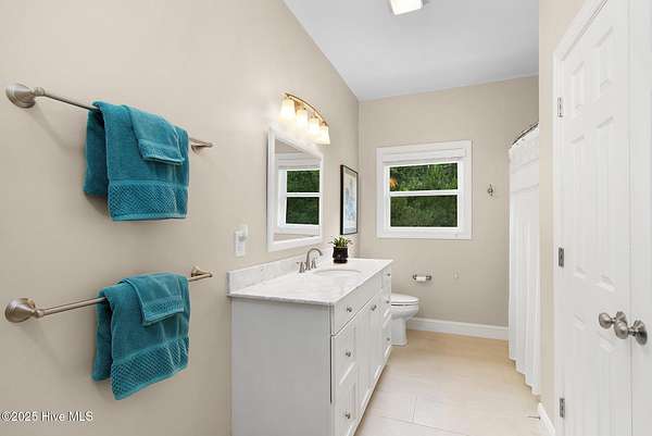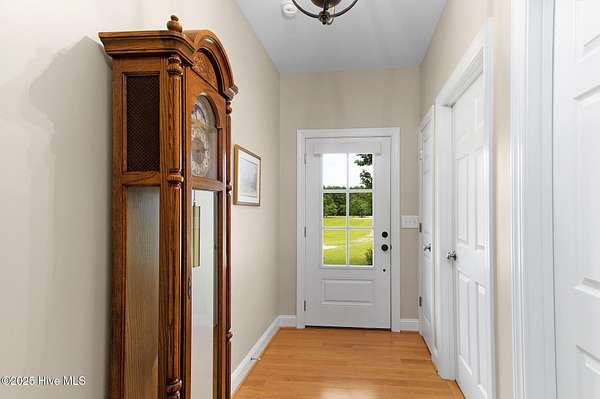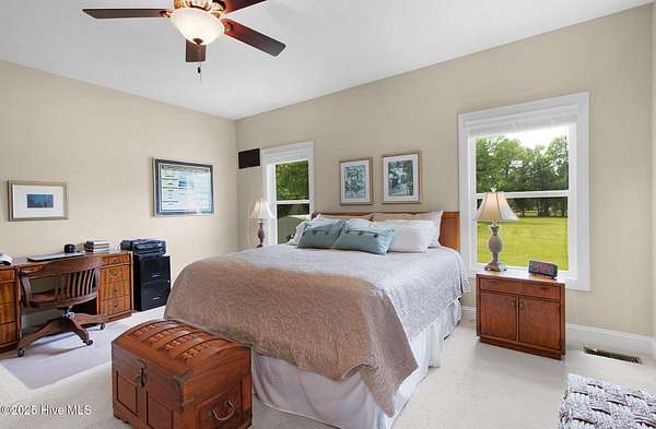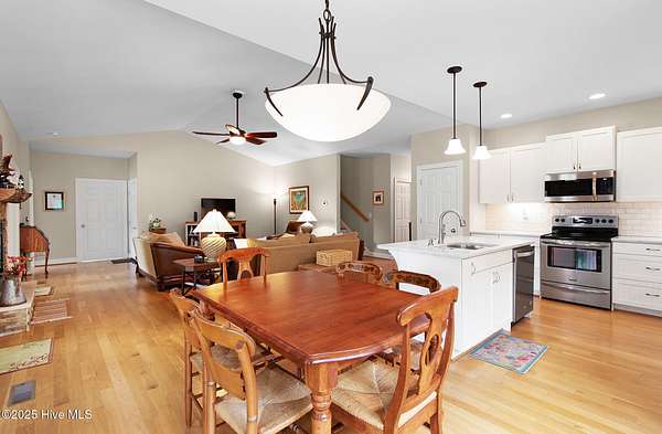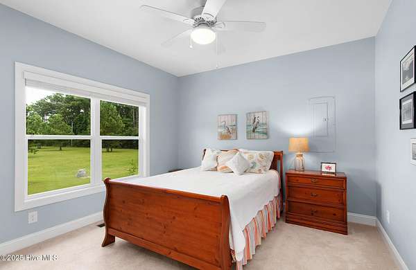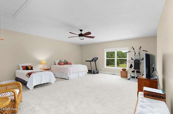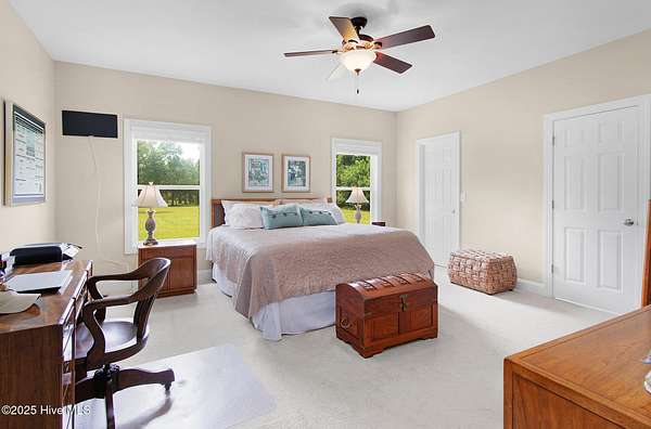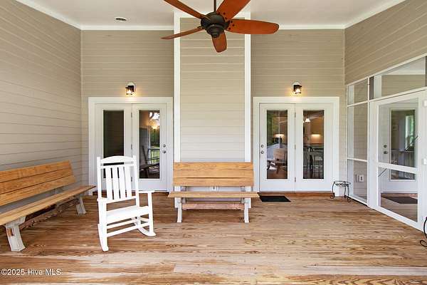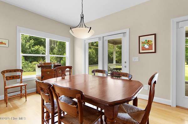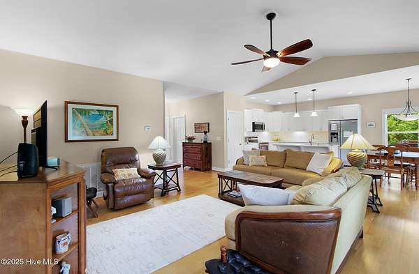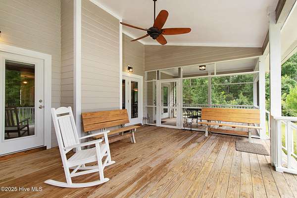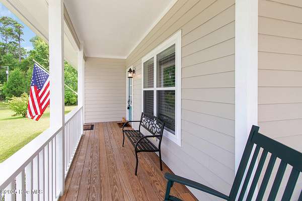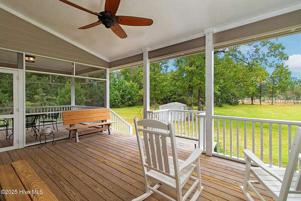 This waterfront, custom-built 3-bedroom, 3-bath home with a large bonus room sits on over 9 acres, offering both privacy and space to enjoy a quiet coastal retreat. A private dock provides water access, while wood floors flow throughout the open-concept first floor. The bright kitchen features white cabinets and countertops, a tile backsplash, stainless steel appliances, and a spacious island with extra seating that connects seamlessly to the dining area. Step from the dining space onto the screened porch-ideal for enjoying morning coffee or relaxing dinners outdoors. The living area, centered around a cozy wood-burning fireplace, opens to a covered porch with sweeping views of the expansive backyard. The spacious primary suite includes a walk-in closet and an ensuite bath with a double vanity and a tiled shower. Two guest bedrooms and a full bath are located at the front of the home, with a large bonus room and additional bath upstairs-perfect for a media room or office. A whole-house generator ensures comfort year-round, and a backyard shed offers convenient storage for lawn and outdoor equipment. This property was originally part of the Creekside subdivision; however, the restrictive covenants and recorded maps have been withdrawn from the Register of Deeds. There may be potential for subdivision, with expired septic permits for the remaining lots still on file at the Environmental Health Department. Buyer and/or Buyer's Agent should verify all information and conduct their due diligence. Whether you're looking to build, invest, or simply enjoy a peaceful, natural setting-this property offers endless possibilities.