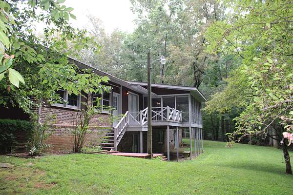 Est $2,146/moLarge ranch home on 11+/- acres with 300+/- feet on Hickory Creek. About 7 acres in grass with the balance of the acreage in mature hardwoods. Home has 3 bedrooms, 2 full baths, living, kitchen, dining, breakfast rooms, basement with den and bath, 2-car garage, and large screened-in porch.