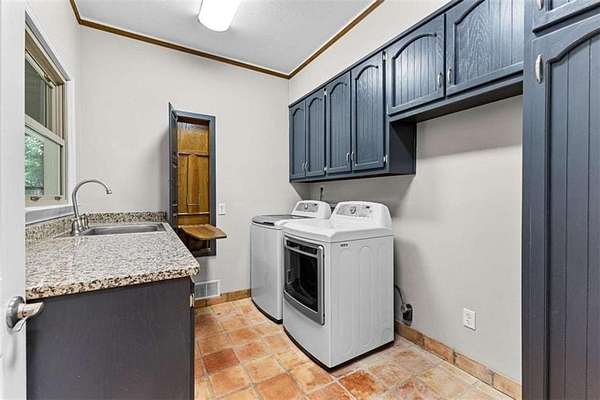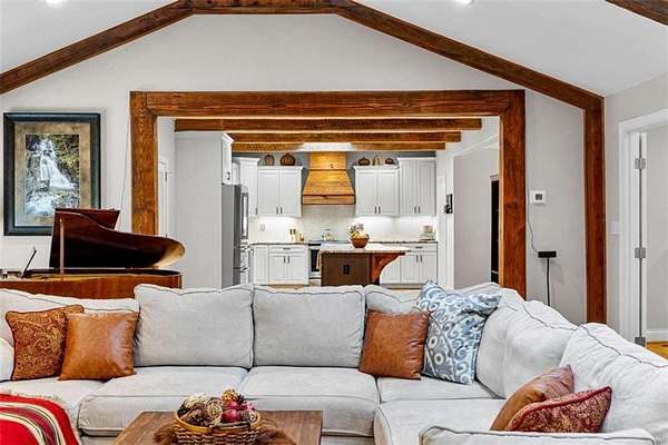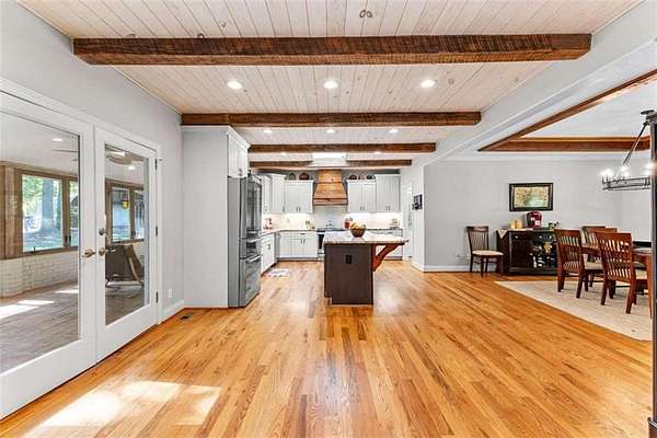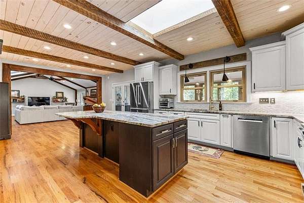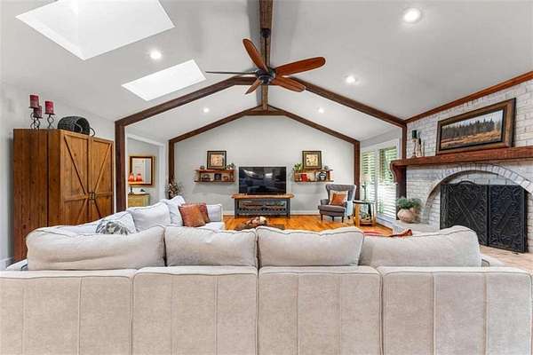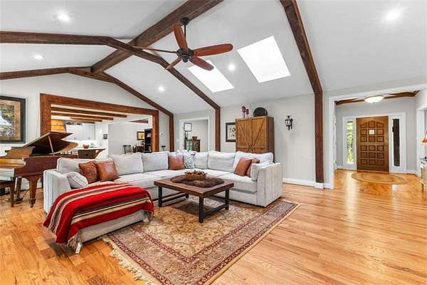 MUST SEE! One-of-a-kind private retreat on 8 wooded acres in a gated 110-acre community within the sought-after Whitewater school district! This quality-remodeled ranch offers over 3,000 sq. ft. on the main level plus a fully finished 2,000+ sq. ft. terrace level, perfect for multi-generational living or entertaining. Step inside to a light-filled, open floor plan featuring skylights, a stunning centerpiece fireplace, hardwood floors. The updated kitchen boasts soft-close cabinetry, granite countertops, a custom wood hood vent, and a spacious island that opens seamlessly to the dining and family rooms. Enjoy your morning coffee year-round in the heated and cooled tiled sunroom overlooking the natural landscape. A updated half bath and office with French doors complete this space. The luxurious main level primary suite is your personal retreat, with a huge walk-in closet and spa-like bath showcasing a glass walk-in shower, soaking tub, dual granite vanities, and marble travertine tile. Step out to your own private balcony and take in the serene wooded views. Two additional spacious bedrooms with double closets and a large full bath complete the main floor. The freshly painted terrace level is designed for flexibility, offering a full second kitchen, family room with fireplace, two bedrooms, a full bath, game/rec room, and abundant storage. With a separate drive, entrance, and covered patio, it's ideal for guests or extended family. Outdoors, you'll find thoughtful extras including a brick smoker, a 24' x 35' outbuilding with two large roll-up doors, chicken coop and an additional workshop/storage room attached to the 3-car carport. No worries when the power goes out-the backup propane-powered generator kicks in automatically so you won't miss a beat! Your daily drive through the gated community winds past creeks teeming with wildlife, creating a serene, mountain-like setting while enjoying peace, quiet, and access to walking trails a common park and picnic area for the community to use. This rare property combines modern updates, quality construction, and unmatched privacy - all in a convenient Fayette County location. Don't miss your chance to make it yours!