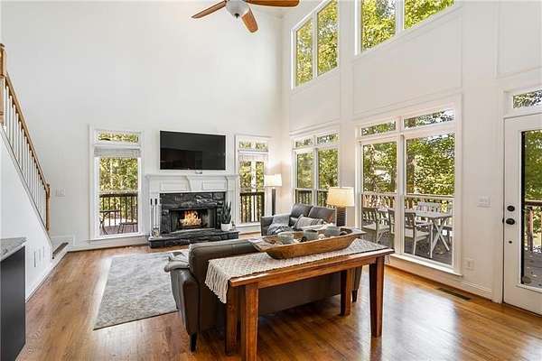The location everyone is looking for...Cherokee County, but so close to Milton! The Red Gate Lakes community is a sought after neighborhood in a premium location. 200 Red Gate Terrace is perfectly positioned 4 bedroom 4.5 bathroom home on the lake, with spectacular views and ample lake frontage. Room for a pool as well! This traditional two-story home has been lovingly maintained and is ready for its next owners. You'll love the 2+ acre lot in this no-HOA community. Zoned AG, so you can bring those chickens! There's even a coop in place for you. A rocking-chair front porch greets you as you enter this unique property. The open foyer houses one of two staircases in this spacious home. The main level also boasts a formal dining room that seats 12+, an office (currently used as a piano room), a vaulted great room with cozy fireplace, and a spectacular mid-century modern kitchen with cabinets imported from Europe. Heading upstairs you'll find four bedrooms and three full baths. The primary ensuite is oversized and has his and hers closets. The secondary bedrooms are each generously sized as well, with plenty of closet space. The terrace level of this amazing home is fully finished with a walk-out patio to the lake and fire pit. It also features a movie room, bar area, game room, and newly remodeled full bath. With an entire wall of windows, this space is bright and functional. This home offers charm, premium location, a lovely community, and plenty of privacy. Schedule your appointment to see this unique gem today!