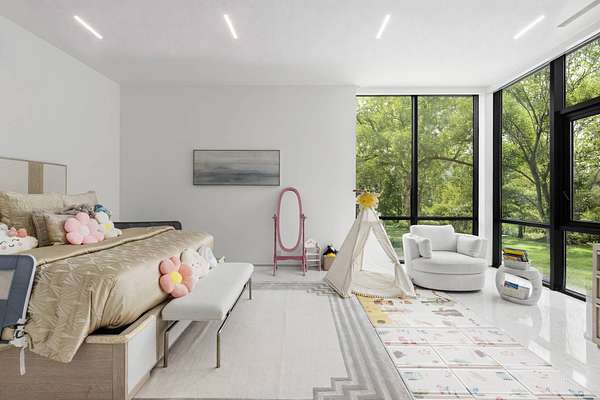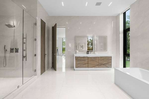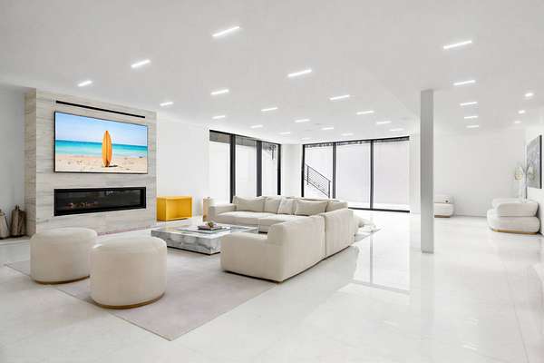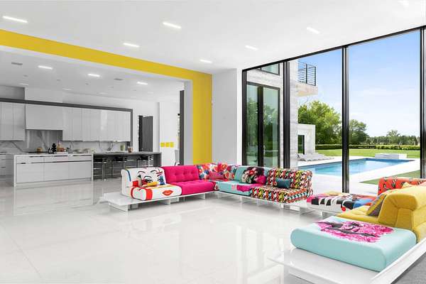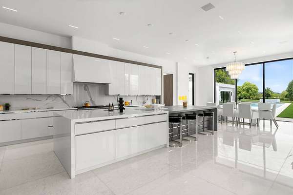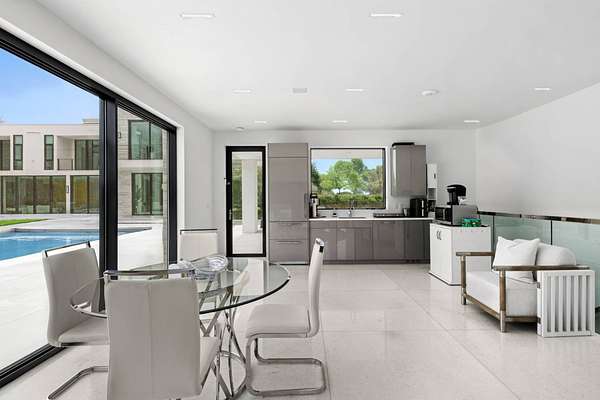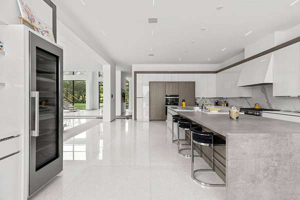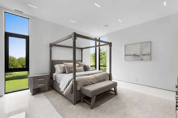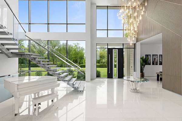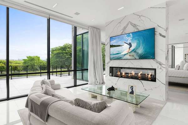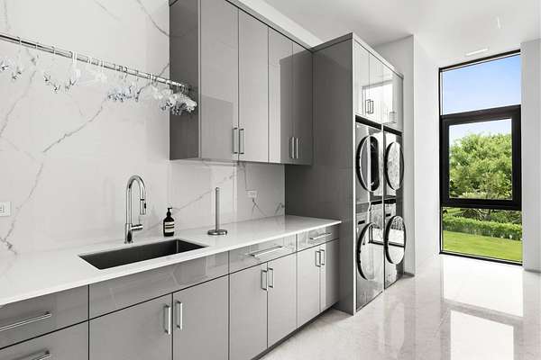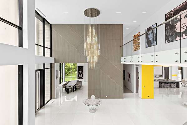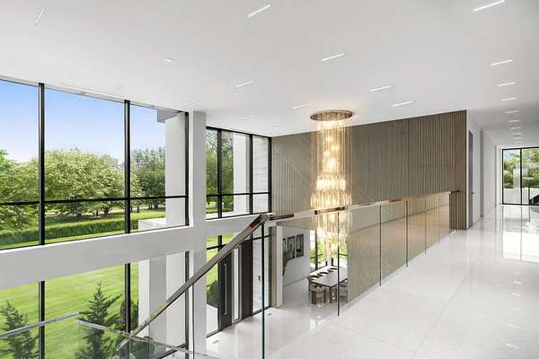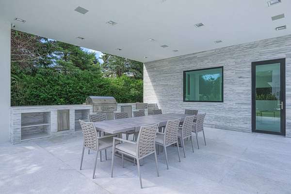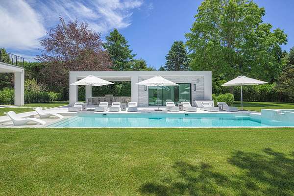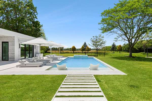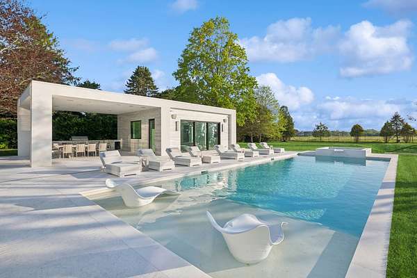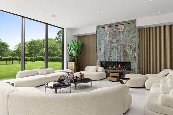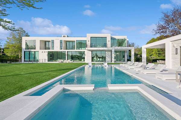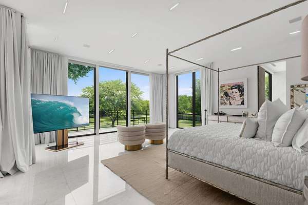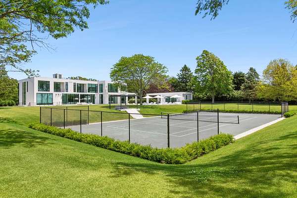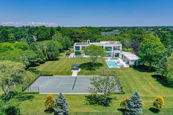 Set on 2.29 landscaped acres on one of the area's most coveted streets, this gated property sits overlooking a 65-acre agricultural reserve. Mecox Bay is at the end of the street and ocean beaches are just beyond. Uniquely, the house is built with cast concrete and steel, and is wrapped with walls of glass. 12-foot tall glass sliding doors that face west overlook the pool and sunken tennis court. The estate is roughly 19,000 square feet across three levels with 10 bedrooms, 13 full and 2 half baths. A grand foyer opens to a great room with a soaring ceiling, Roche Bobois furnishings and a marble fireplace. There is a large eat-in kitchen with extensive Gary Ciruffo cabinetry and an adjacent chef's kitchen and an office. A primary bedroom anchor the first level with a walk-in closet, luxe bath with double vanity, soaking tub and steam shower. The second floor imperial suite has a private terrace, sitting area with fireplace, two full bathrooms, and two walk in closets. Two other bedrooms upstairs have private balconies with en suite baths and walk in closets and the remaining 4 bedrooms on the second floor are all ensuite with walls in closets. The rooftop deck captures sweeping views of the reserve Mecox Bay and ocean. The lower level offers a full movie theater with stadium seating, game room, wine room, oversized gym with full bath, two guest bedrooms ensuite with walk in closets, and a lounge-style living room with a wet bar, pool table and fireplace with easy access to the pool. Outdoors, a 18' x 50' heated gunite pool and spa is framed by a huge stone deck with a glass-enclosed pool fence underway. The pool house includes two baths and a finished lower level. A sunken Har-Tru tennis court completes the resort set. Professional landscape lighting runs throughout the entire grounds. There is a backup generator, solar panels, elevator and 3-car garage.