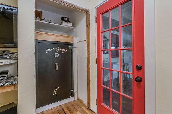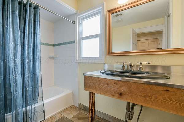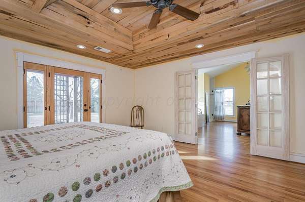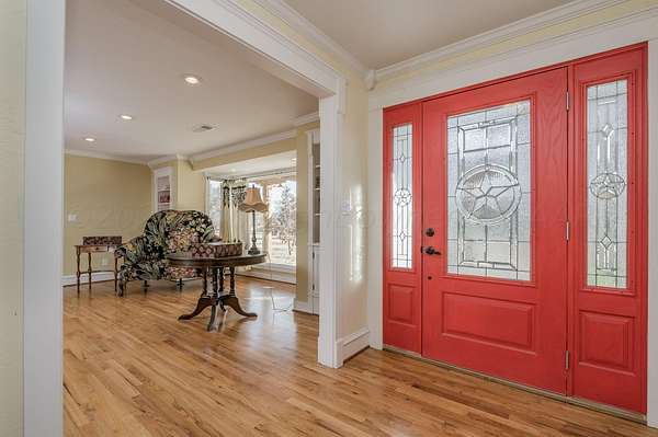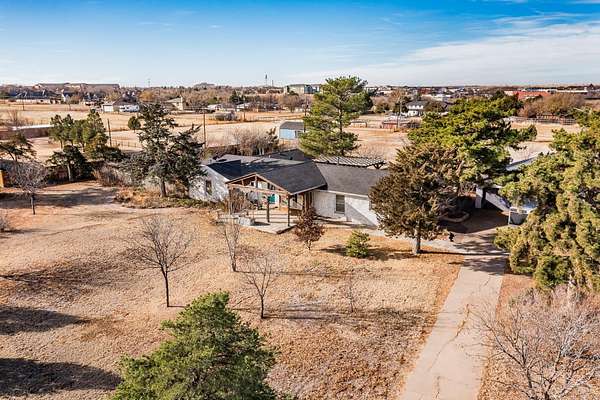 Beautiful Southwestern Ranch home set on an amazing two acres with colorful, large trees and flowering shrubs. Horses will love the pasture and trees. Each porch has been designed with Santa Fe Architecture. The East Portico has lovely views of the surrounding estates and the Amarillo Country Club. The artisan woodwork entry from the porches to each room is captivating. The spacious Living area is framed by natural light and is cozy with the wood burning stove. The North Porch has a kitchen door access and a side porch. The kitchen is a chef's dream and the cabinets, island, and bar are Knotty Alder creations by Mark Howard. The original hardwood floors were brought to a new life by Don Wallace who also added Red Oak Flooring to the kitchen.