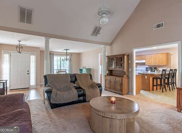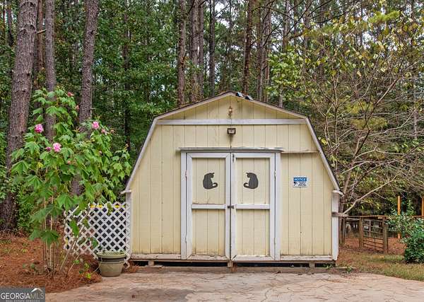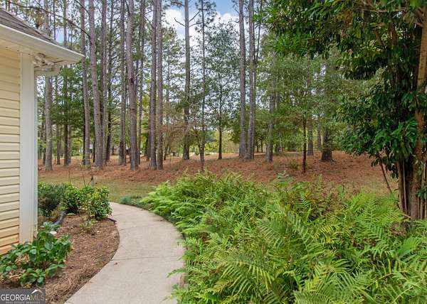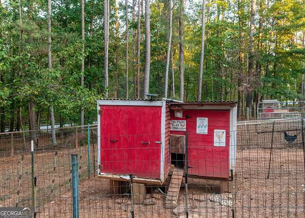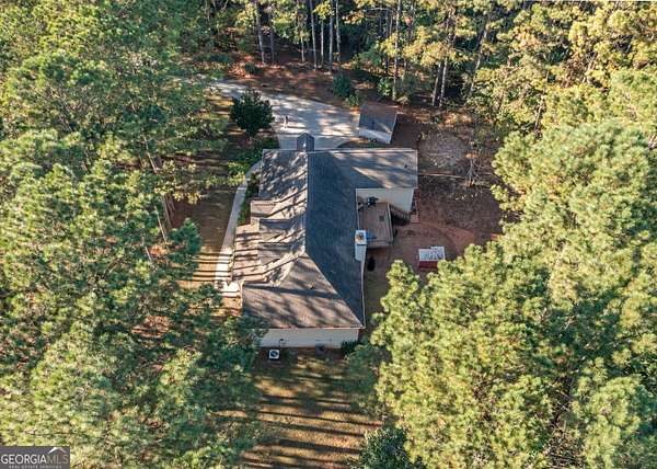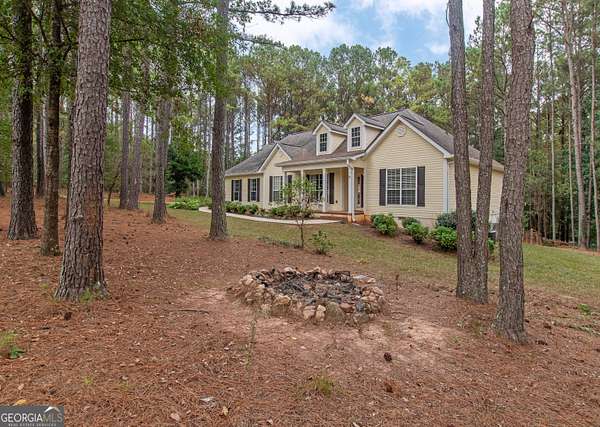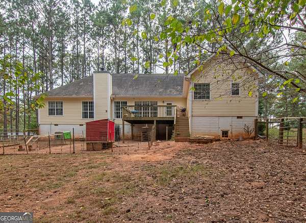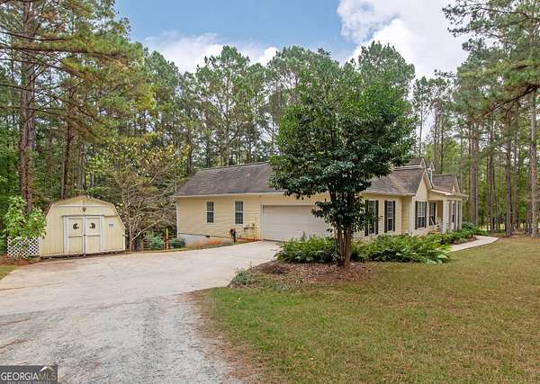 This 2,053 +/- sq ft home has a country feel on 2 private acres yet is convenient to Sam's Club/Costco (11.3 miles), Newnan & Peachtree City. You will love the covered front porch...a great place to watch the sunsets! The Dining Room and Family Room are nice size, the Family Room has a vaulted ceiling and stone fireplace. The large Kitchen & Breakfast Area has a coffee bar and desk area and the Pantry is located in the spacious laundry room off the kitchen. The dishwasher was replaced 3 yrs ago. The Primary Suite is spacious and the Primary Bath has double vanities, garden tub, separate shower and walk-in closet. The secondary bedrooms are nice size with double closets. Upstairs you will find a large Bonus Room with access to the attic. There is a 12 x 12 Storage Building and additional parking area for RV/Boat/Guests. The backyard is fenced and the red chicken coop can stay with the property. The crawlspace is head height and has abundant space. The house has been recently pressure washed and the septic tank was pumped in 2025. NO HOA!