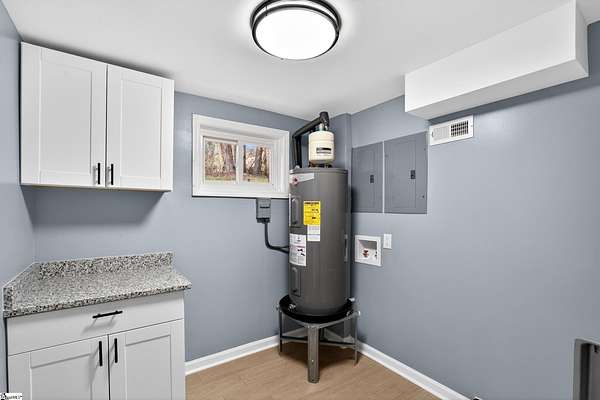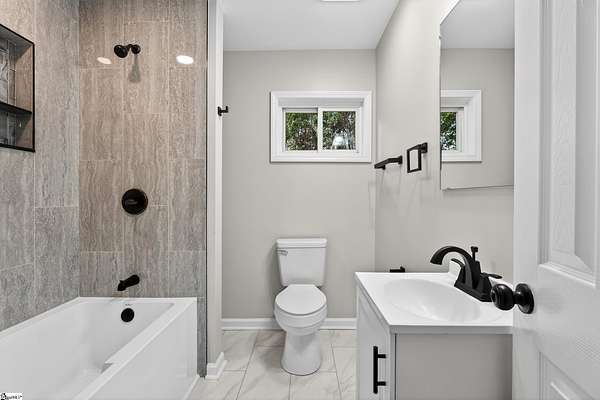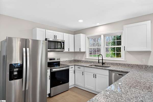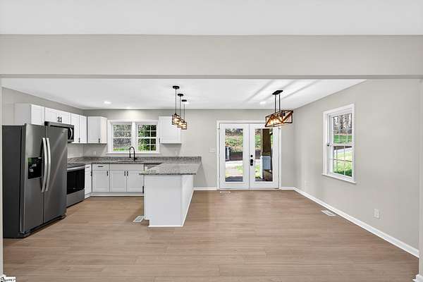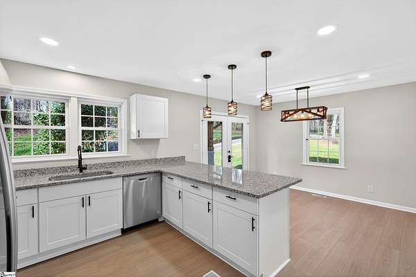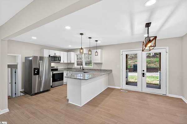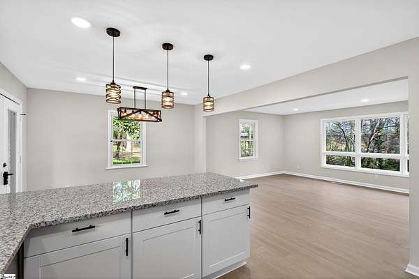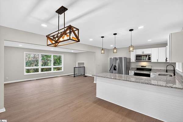 SPACE FOR EVERYONE AND HUGE DETACHED SHOP WITH NO HOA! Experience the perfect blend of space and style in this fully remodeled split-level home, offering over 2,200 square feet of modern living in a quiet Spartanburg neighborhood with no HOA. The main level welcomes you with an open layout connecting the kitchen, dining, and living areas. Perfect for entertaining or everyday living. The kitchen features granite countertops, stainless steel appliances, shaker cabinetry, and a large peninsula surrounded by natural light. Upstairs, you'll find three comfortable bedrooms and a beautifully renovated full bathroom with premium tile, backlit mirrors, and modern fixtures. Downstairs, a spacious den provides the perfect flex area for a media room, home office, or guest space accompanied by the fourth bedroom and a second fully updated bathroom with premium tile, plus a large laundry and storage room. Outside, enjoy a relaxed private setting with mature trees, a fire pit area, and an impressive detached workshop and garage totaling over 1,000 square feet with electricity, plumbing, and multiple garage doors. The attached two-car garage, dual driveways, and extra gravel parking make hosting, storage and access easy. Freshly renovated painted inside and out, this move-in-ready home combines comfort, convenience, and style just minutes from downtown Spartanburg, I-85, shopping, and local parks. Schedule your tour today!