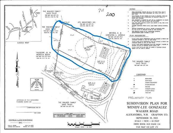 Beautiful 2.3+- acre parcel located in the town of Alexandria, situated right off Route 104 with more than 200 feet of road frontage on town maintained Walker Road. The lot is primarily cleared and includes an existing driveway. A survey identifies designated locations for both a septic system and well. The property offers a large, level area suitable for residential construction, with potential mountain views depending on siting. Conveniently located near Newfound Lake and Ragged Mountain Ski Area, the property provides access to local recreation and surrounding communities. The Town of Alexandria has approved the subdivision of the original parcel known as 144 Walker Road. This is a perfect time of year to get permits and contractors lined up with Spring just around the corner.
