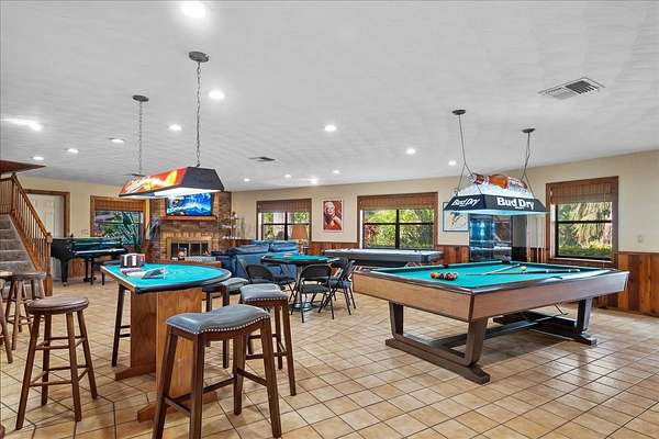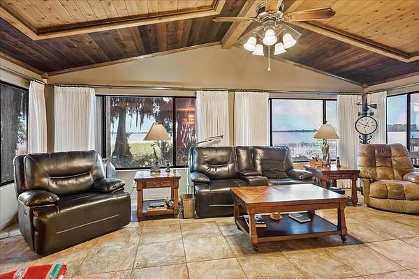 Looking for something truly unique? Welcome to Windy Point Estate - your own private piece of Florida paradise. Set on 3.5+- acres (subdividable) with 700+- feet of shoreline on Lake Istokpoga, this executive custom pool home offers the perfect blend of luxury, privacy, and nature. Whether you're looking for a serene escape or a profitable investment, this home delivers. Inside, you'll find: *5 spacious bedrooms, each with its own private bath and large shower *Additional half bath, spa room, and a covered pool *4 fireplaces throughout the home for warmth and ambiance *A chef's kitchen with granite tile counters, built-in buffet, and adjacent breakfast nook with lake views and wood-burning fireplace * A 44' x 24' great room with a wet bar, games, and shuffleboard area-ideal for entertaining * Dedicated room for relaxation with built-in spa Enjoy peaceful mornings and vibrant sunsets from the living room, complete with cathedral cedar ceilings and 180-degree lake views. Step outside to the covered deck, lakeside fire pit, BBQ pergola, and private dock with boat lift and running water. Additional Features: *Upstairs master suite with separate entrance, huge bathroom (20' x 16.5+-), spa tub, double vanities *Metal roof (2018) *Updated appliances: water heater, washer, dryer, stove (2019) *Two outbuildings with electric & water: 40' x 16' & 38' x 26' + carport *Boardwalk for lakeside strolls *Public boat ramp just 0.3 miles away Flexible use potential: The home is currently operating as a short-term rental (Airbnb), with gross income around $80K/year-leaving room for future income growth. Under roof: approx. 6,874 sq ft (as per property appraiser) Major remodels: 1990 & 2022 (conversion from 3bed and 2.5 baths to 5 beds, 5.5 baths including new drain field) * AS-IS sale * Most furniture included * Seller's agent must be present for showings * Buyer's agent must accompany buyer if represented * Pre-qualification required for all showings If you're ready to own something extraordinary with endless potential, Windy Point Estate is ready to welcome you home.