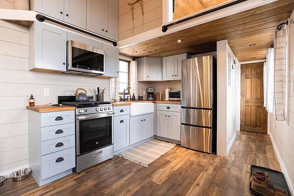 Looking to downsize and simplify your living, or invest in a high-demand vacation rental property? Cedar Brook Cabin offers an exciting opportunity to own a fully furnished, luxury two-bedroom tiny home on 5 acres in the heart of Maine's ''Vacationland.'' Located in New Gloucester, just 30 minutes north of Portland, Cedar Brook Cabin is perfectly situated for enjoying all that Maine has to offer, including nearby state parks, hiking, and local attractions like Norumbega Cidery, Big Falls Preserve & Pineland Farms. The cabin features a bedroom on the main floor, a loft bedroom, an additional loft for relaxing, storage or more space for sleeping, a full kitchen with a gas stove, butcher-block countertops, a farmhouse sink, and all the essentials for comfortable living. Enjoy modern amenities such as high-speed Wi-Fi, a 40'' Smart TV, air conditioning, and a small soaking tub with a shower & washer/dryer. Outdoors, enjoy meals at the picnic table or relax by the firepit & watch the sunset. Also included is a 14'X30' Hillview Mini Barn shed for all your storage needs. Whether you're looking to embrace tiny home living or capitalize on its rental potential, Cedar Brook Cabin provides the perfect mix of style, convenience, and a desirable location. Property management is already set up with Wildwood Collective for turnkey income on day one!