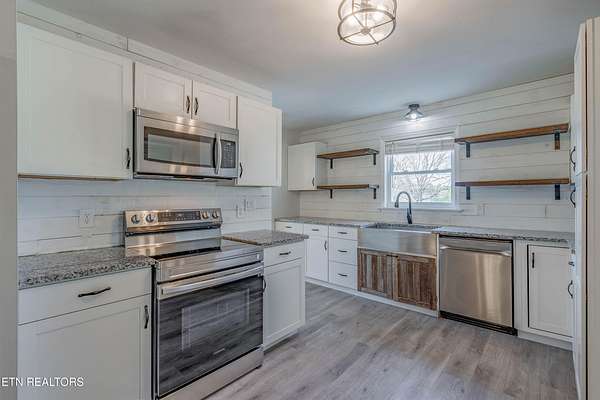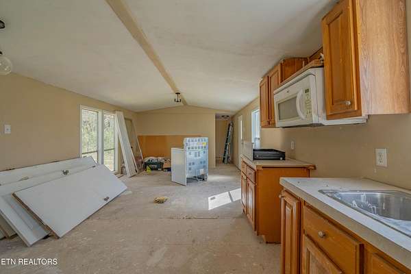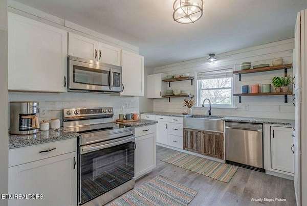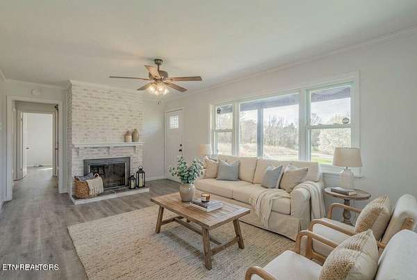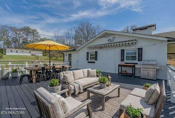 Welcome to 2000 Bays Mountain Rd, a beautifully renovated brick basement ranch offering flexible living and unique multi-use potential. Recently updated and freshly whitewashed, this home blends classic charm with modern finishes and inviting outdoor spaces. A sprawling front porch welcomes you in and provides the perfect place to relax and enjoy the peaceful setting. Inside, the main level offers approximately 1,574 square feet of living space with comfortable living areas, well-sized bedrooms, and a bright kitchen and dining area designed for everyday living and entertaining. The finished basement provides an additional bedroom, recreation room, or flex space, bringing the home to approximately 1,831 square feet of finished living area, while the unfinished portion of the basement offers generous storage or potential for future expansion. What truly sets this property apart is the separate single-wide manufactured home the seller has begun renovating, located behind the main house, creating excellent possibilities for multigenerational living, a guest house, a rental opportunity, or a private workspace. The manufactured home sits on the same parcel but has its own address (1992 Bays Mountain Rd), separate water service, septic system on file, and its own electrical meter, allowing for independent living. The manufactured home is 913/sqft and has its own title. Septic records are on file for the manufactured home. Knox County records did not locate a septic permit for the main residence; however, the system was pumped and inspected when the seller purchased the property in 2021. Pictures with furniture are virtually staged.