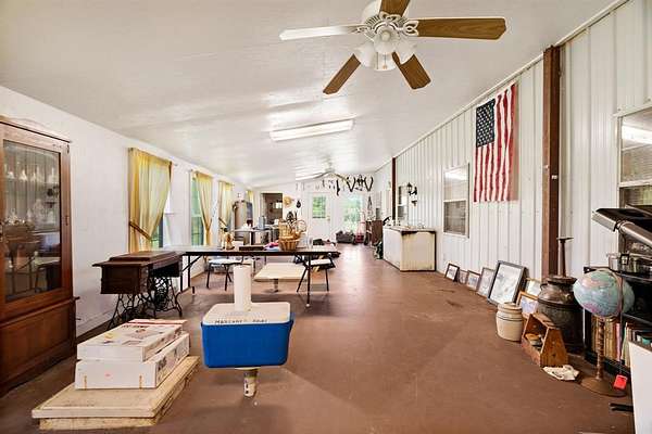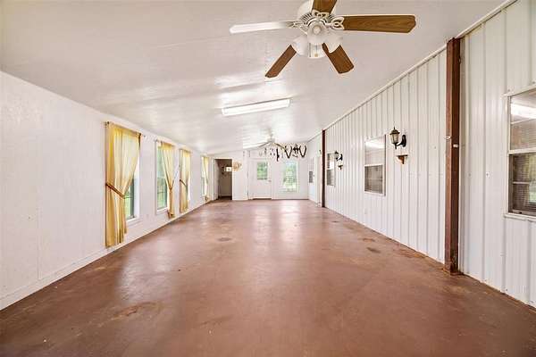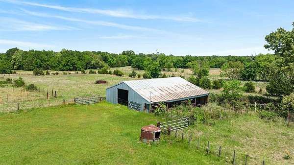 Travel out to the country and imagine yourself on this 53.65 acre ranch in NW Lamar county, near the Fannin county line. Scatterd trees, a few woods and wide open spaces, this is something that can make everyone happy. This property offers an owner a multitude of opportunities with the 53+acres, house, outbuildings and country location. The land has a slight roll with a creek running through it making it an ideal piece of paradise for a buyer. Fenced and cross-fenced, the property is set up for cattle, horses, hay production or recreational use. With the barn, storage building and workshop, you have everything you need to make this an active ranch or county paradise. The barndominium styled residential structure offers over 3500 square feet of living space including an open floor plane providing ample space for family and friends. The kitchen is open to the living area with plenty of cabinets for storage. The primary bedroom is spacious withe private full bath and walk-in closet. Another and possibly a 3rd bedroom with bath completes the sleeping quarters. The oversized enclosed patio is perfect for evening or morning views of the land.