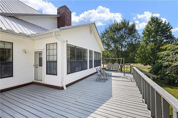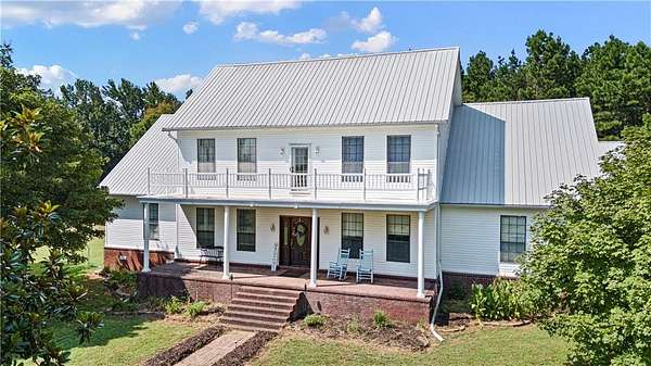 Come and experience the charm of this stunning 5-bedroom, 3-bath home offering 3,539 sq ft of beautifully designed living space. Step into a welcoming living area with soaring cathedral ceilings and a cozy wood-burning fireplace--perfect for relaxing evenings. The eat-in kitchen features granite countertops, double ovens, and plenty of counterspace for entertaining. Enjoy your morning coffee on the covered front porch while taking in the serene views of the surrounding pasture and wooded landscape. This home also includes a dedicated study, a sunroom filled with natural light, and a formal dining room, providing plenty of space for both work and play. Nestled on 19.88 acres +/- of rolling pasture and woods, with a barn. It's the perfect blend of comfort, privacy, and natural beauty. Don't miss out--schedule your private showing today!