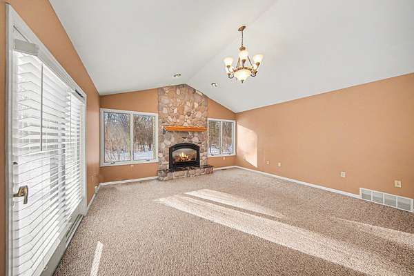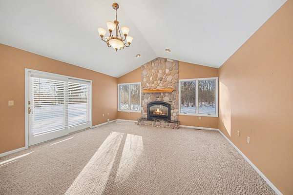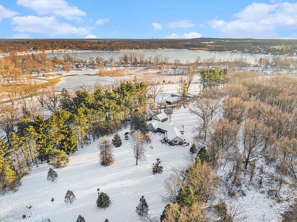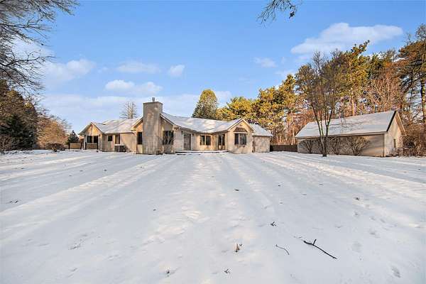 Welcome to a truly rare offering in the heart of Vandercook - a custom-built ranch perfectly positioned on an almost 4-acre wooded parcel with a peaceful, ''Up North'' setting and abundant wildlife. Enjoy water front on Cove Lake with limited access to Vandercook Lake (select vessels), creating a quieter, more relaxed waterfront experience. Inside, the home is filled with natural light thanks to an impressive number of large windows that frame the surrounding mature trees and natural views. The layout offers 4 bedrooms and 3 baths (2 full, 2 half), including a private primary suite with its own deck - an ideal place to unwind with morning coffee or take in all the wildlife. The finished lower level adds exceptional flexibility, including space that could serve as a 5th bedroom, recreation room, or guest retreat - plus over 1,000 sq ft of additional unfinished basement space ready for future expansion, a home gym, or storage. A 24x28 detached outbuilding provides the perfect setup for extra vehicles, hobbies, tools, or workshop space. Entertain on the backyard deck, gather by the bonfire near the water, or spend the day fishing and enjoying nature at its finest - while still being minutes to US-127, Meijer, Menards, and local favorites like Klavons and Luceros. This is the secluded, wooded lifestyle buyers crave - without sacrificing convenience. Schedule your private tour today!