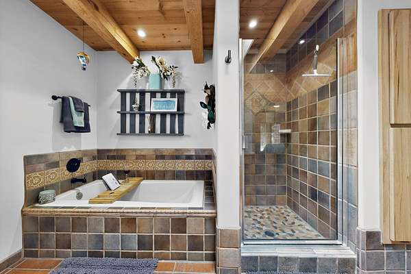 - Beamed Ceilings, Bookcases, Cable Tv, Ceiling Fans, Dual Sinks, Entrance Foyer, Family Dining Room, Great Room, In Law Floorplan, Kitchen Island, Living Dining Room, Main Level Primary, Multiple Living Areas, Separate Formal Dining Room, Sitting Area In Master, Tub Shower, Walk In Closets, Water Closets