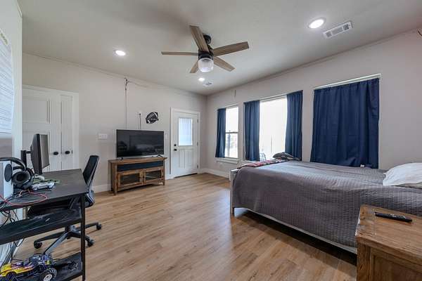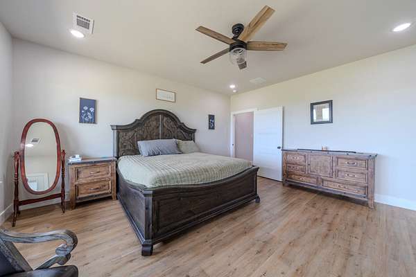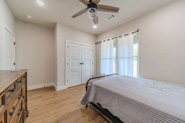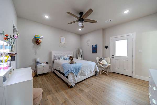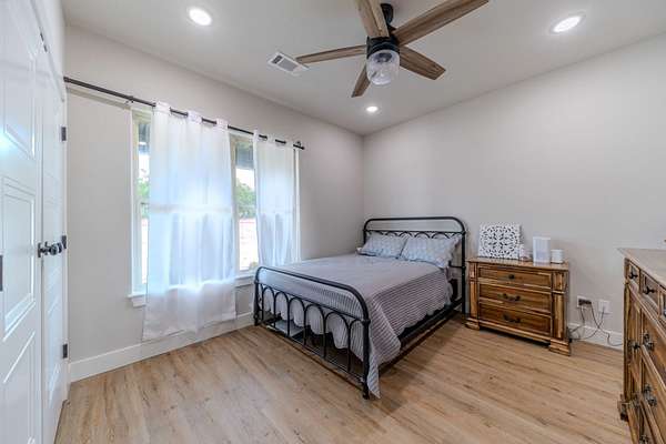 Refined Guest Quarters: A secondary bedroom with an adjacent full bath is perfectly positioned near the entrance, offering convenience without compromising privacy.