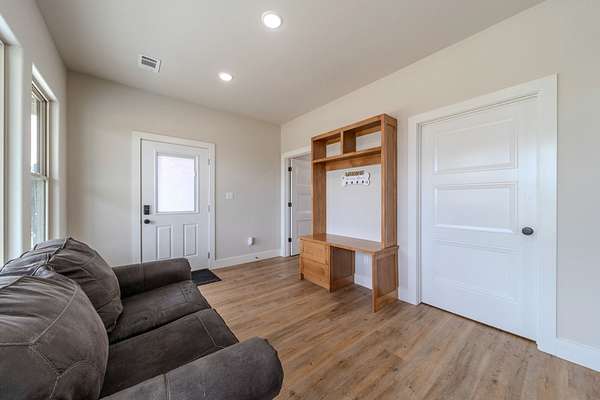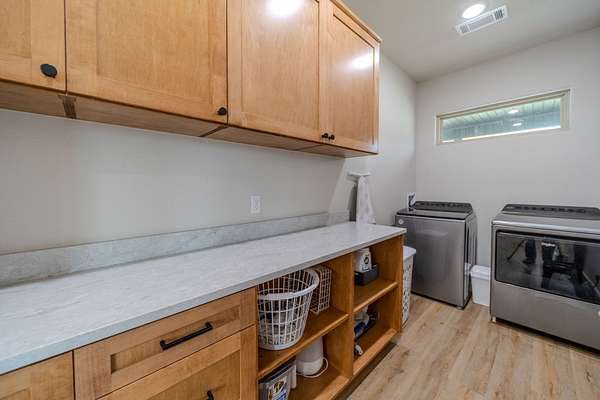 Modern Utility: A dedicated home office, a second laundry facility, and a mudroom with a designer half-bath.