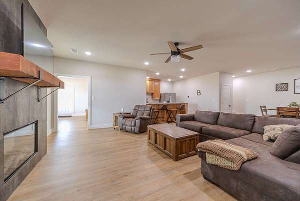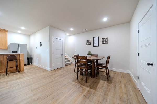 The lower level is a fully realized living space, mirroring the quality of the main floor: