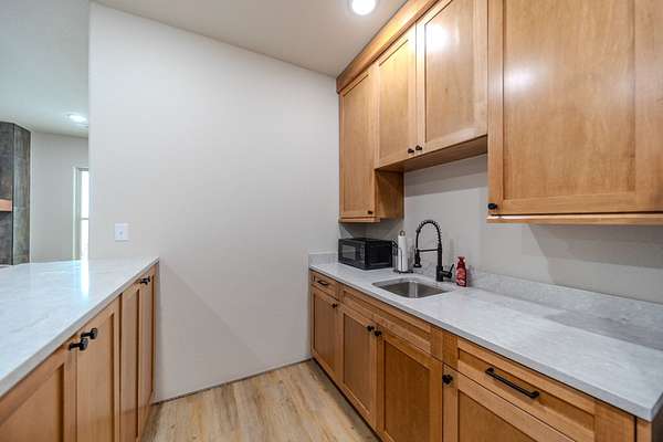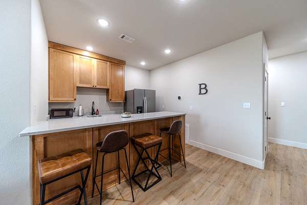 Extended Living: A second grand living area features a complete prep kitchen, ideal for hosting long-term guests or hosting sophisticated gatherings.