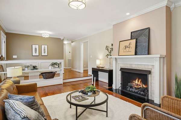 Enjoy flexible living with primary suites on both the main and upper levels. A charming screened-in front porch welcomes you, while the professionally designed landscaping bursts with year-round color. Relax beside one of two working fireplaces, or unwind on the cozy back patio overlooking a fully fenced backyard and your very own woodlands.