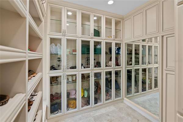 - Built-In Features, Cathedral Ceiling(s), Ceiling Fans(s), Chair Rail, Coffered Ceiling(s), Crown Molding, Eat-In Kitchen, Elevator, L Dining, Open Floorplan, Primary Bedroom Main Floor, Sauna, Smart Home, Solid Wood Cabinets, Split Bedroom, Stone Counters, Thermostat, Tray Ceiling(s), Vaulted Ceiling(s), Walk-In Closet(s), Wet Bar, Window Treatments