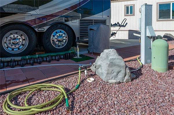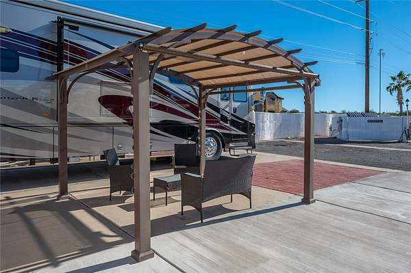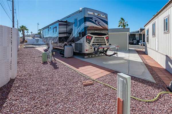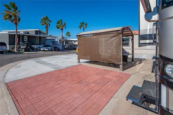 Rare oversized corner RV lot in gated Riverview RV Resort offering an exceptional combination of privacy, space, and walkable proximity to the clubhouse and resort amenities. One of the largest lots in the community, this premium property stands out for its quiet, secluded corner location and how private and tucked-away it feels - a truly rare find within the resort. The owners love this lot for its peaceful setting, excellent neighbors, and unmatched sense of seclusion while still being close to everything. Features include upgraded concrete for wide turns and abundant parking, decorative paver-lined driveway, custom pergola with Coolaroo roll-down shades, and a large 10x12 Tuff Shed with power-perfect for golf cart parking and charging. Shed includes 120V power with a 4-plug outlet, plus both 50-amp and 30-amp RV hookups at the pedestal for maximum convenience. Cleverly, the water hookups are discreetly camouflaged with decorative rock for enhanced curb appeal. A residential-style water softener system is included for added comfort and convenience. Cement block posts add privacy and definition, further enhancing the secluded, private feel of the lot. The quiet corner setting minimizes traffic while maximizing privacy, making this an ideal setup for long-term stays, outdoor entertaining, and enjoying a peaceful, resort-style lifestyle. Enjoy full access to Riverview RV Resort's exceptional amenities, including guard-gated entry, championship-style golf course, resort pools and spa, fitness center, clubhouse, community center, pickleball and tennis courts, shuffleboard, billiards, card and poker rooms, craft and hobby rooms, dog park, pro shop, laundry facilities, and a full calendar of social activities and events. This is a premium oversized corner lot offering a rare combination of space, privacy, power upgrades, parking, and prime resort location. Lots of this size, secluded corner setting, and level of upgrades are rarely offered in Riverview. Don't miss this exceptional opportunity to secure one of the community's most sought-after RV lots - these premium properties do not last. Schedule your showing today before it's gone.