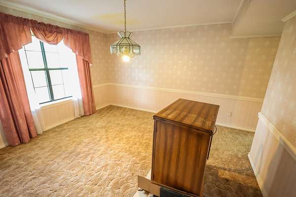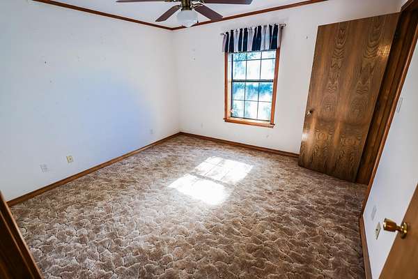 - Carpeting, Ceiling Fan, Partial Curtains, Shades/Blinds, Vinyl Flooring