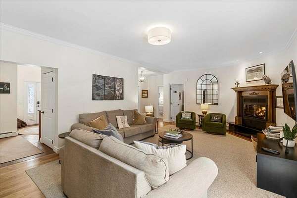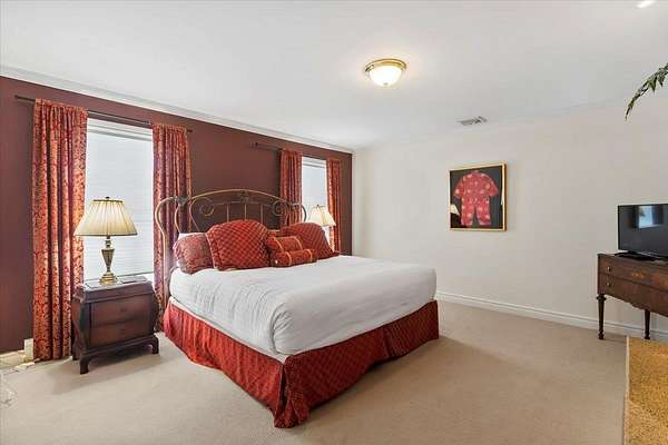LOCATION, LOCATION: Just 8 minutes to Bromley and 20 minutes to Stratton, yet close to Manchester's dining, shopping, fishing, golf, and the Horse Show. Built as a bed & breakfast, this fully furnished and impeccably maintained 6-bedroom, 7-bath retreat offers over 5,400 sq ft on 2 private acres--ideal as a primary home, vacation getaway, or rental investment. With a strong history as a successful Airbnb/short-term rental, Greybourne House is well-positioned for continued income. Freshly painted interiors create a bright, welcoming feel, and a brand-new outdoor hot tub adds a luxury touch. The home features two generous living areas--the main floor great room and the walkout lower-level den--designed for gathering and relaxation. The chef's kitchen with double ovens, dual refrigerators, granite counters, and a central island flows into the dining room for easy entertaining. Two bedrooms, including the primary suite, are on the main level, while four additional en-suite bedrooms upstairs each offer a gas fireplace and TV. The oversized two-car garage connects through a custom ski mudroom to a well-equipped laundry and pantry. The finished lower level adds a den, bar, game/lounge areas, a full bath, and direct access to the landscaped grounds. With flexible zoning, a prime location, and strong rental appeal, Greybourne House is a move-in-ready year-round retreat or income-producing property.