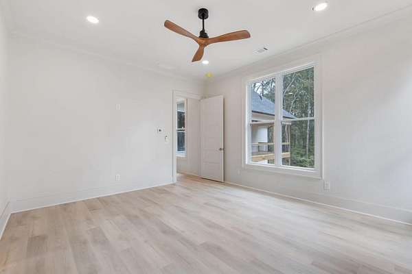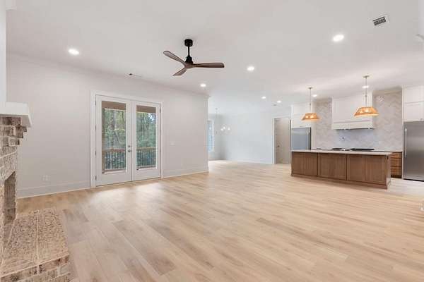 Luxury Custom Ranch Home on 2 Acres | Finished Bonus Suite | Full Daylight Basement | No HOA | Top-Rated Schools Discover luxury living in the highly desirable Avery / Creekland / Creekview school district in Cherokee County. This custom-built ranch home on a full basement sits on nearly 2 private acres with no HOA and easy access to I-575, Canton Marketplace, Alpharetta, Milton, and Hickory Flat. This modern farmhouse-style ranch offers 3 bedrooms, 2.5 baths on the main level, plus a large upstairs bonus suite with full bath & walk-in closet - ideal for guests, teens, or a media/game room. Interior Highlights 10-ft ceilings on main and basement Open-concept floor plan with commercial-grade blonde LVP flooring Chef's kitchen with: 48" gas double slide-in range Custom vent hood Separate full-size refrigerator & freezer Quartz countertops Huge walk-in working pantry Huge laundry room connected to both the primary closet and hallway Oversized primary suite featuring: Spa bathroom with soaking tub & separate shower Dual vanities & ample custom cabinetry Large walk-in closet Secondary baths with designer tile & quartz countertops 8-ft solid wood interior doors & custom closet shelving throughout Outdoor & Structural Features 2-acre private lot with wooded backdrop & room for pool/outbuildings Large covered + uncovered front porch & rear deck 3-car garage Tongue-and-groove porch ceilings Dual-pane vinyl windows Full Walk-Out Basement 2,000 sq. ft. unfinished daylight basement 10-ft ceiling height (web truss construction) Stubbed for future bath Circulating hot water system + 50-gallon tank Endless possibilities for expansion: in-law suite, home theater, gym, workshop, or guest apartment Why You'll Love This Home This property offers luxury universal design finishes, privacy, acreage, and top-tier schools - all minutes from shopping, restaurants, and commuter routes. A rare opportunity to own a new-build custom ranch with a basement in the coveted Avery community with NO HOA restrictions.