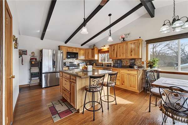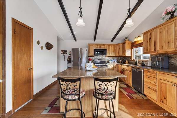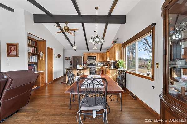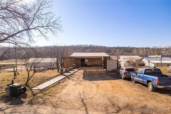 Endless potential meets everyday convenience at this highly visible Hwy 42 location in Brumley. This rare commercial and residential property offers the opportunity to live and work in one place while benefiting from growing highway traffic. The 3-bedroom home features main-level living, an open floor plan with vaulted ceilings, LVP flooring, updated windows, and a modern kitchen with custom cabinetry, tile backsplash, large island, gas stove, and hard-surface countertops. A covered patio, attached carport, and walkout lower level add everyday functionality. The former convenience store includes office space, kitchen area, two half baths, a shower, ample storage, and a large walk-in cooler. Multiple additional outbuildings provide shop, garage, and work space with overhead doors for equipment or vehicle access. Previously operated as a gas station, convenience store, bait shop, deli, and hardware location, this property offers excellent highway frontage with limited nearby competition and increasing traffic. Located in the School of the Osage District and a short drive to Lake of the Ozarks, it's a versatile live-and-work opportunity.