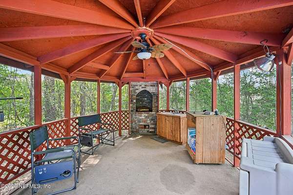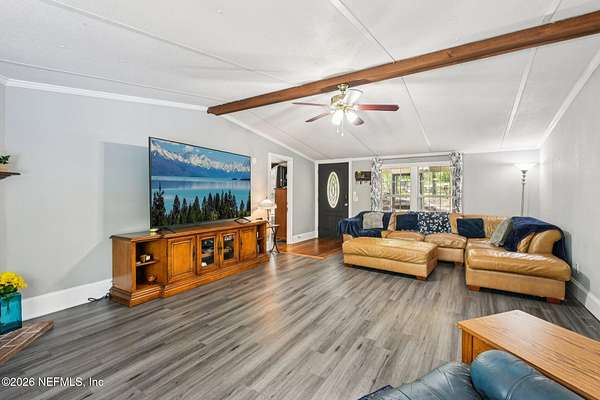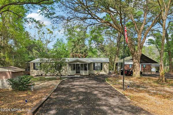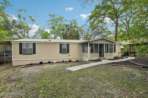 Enjoy the freedom of country living with space to relax, entertain, and create your own lifestyle on this 1.72-acre cul-de-sac property in Middleburg. This 1,440 sq ft manufactured home offers 3 bedrooms, 2 bathrooms, and a split floorplan designed for comfort and privacy. Inside, you'll find LVP flooring throughout, an updated eat-in kitchen with island, and a spacious family room with a bay window and cozy sitting area--the perfect place to enjoy peaceful views of your property. The updated primary suite features a walk-in closet and renovated bathroom, creating a comfortable private retreat. Step outside and imagine evenings with friends around the gazebo's brick fireplace, relaxing in the 8-person hot tub on the covered entertaining deck, or cooling off in the above-ground pool with new deck. With approximately 3/4 acre cleared, there's plenty of space to garden, play, or simply enjoy the outdoors. The property also includes a 20x30 workshop with carport/boatport, chicken coop, and and greenhouse, making it ideal for hobbies, projects, or a small homestead lifestyle. Additional features include a metal roof and new well with filtration system. Conveniently located near top-rated schools, restaurants, Blanding Blvd, and the SR 23 expressway. If you've been looking for space to spread out, room for hobbies, and a property designed for both relaxing and entertaining, this Middleburg retreat is ready to welcome you home. Newer shed and tractor are negotiable.