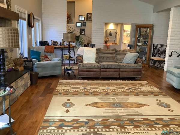 Now offered at $480,000 an exceptional opportunity to own one of the most distinctive homes in the Gallup market. From the moment you step inside, its clear this property is something special. Designed with intention and scale, this 3,160 sq ft contemporary home sits on approximately 2 acres in town, offering privacy, space, and architectural character rarely found at this price point. The kitchen is the true heart of the home and unlike almost anything available locally. Designed for both function and presence, it features custom cabinetry, expansive counters, high-end built-in appliances, a dramatic custom range hood, and a layout that naturally anchors gatherings. Whether you love to cook, entertain, or simply appreciate thoughtful design, this kitchen sets the tone for the entire home. Flowing seamlessly from the kitchen are generous living and dining spaces, highlighted by soaring ceilings, natural light, and a stunning stone fireplace that creates warmth and visual impact. The layout offers flexibility for entertaining, everyday living, or quiet evenings at home. The primary suite is a private retreat, offering space, comfort, and a spa-like bath designed for unwinding at the end of the day. Additional bedrooms are well-sized and thoughtfully placed, including one with direct access to a private deck, ideal for morning coffee or sunset views. Outdoor living is just as compelling. Covered patios, mature landscaping, and peaceful water features create multiple spaces to relax or host friends all while enjoying the rare benefit of acreage without sacrificing proximity to town. Previously priced at $550,000, this significant price improvement reflects a serious opportunity for todays buyer to secure a truly unique home with scale, design, and features that are difficult to replicate. Homes with this level of craftsmanship, kitchen quality, and land rarely come available especially at this value. This is a must-see property to fully appreciate. Schedule your private showing today.