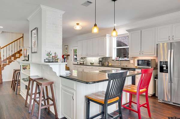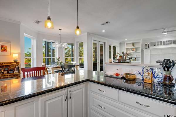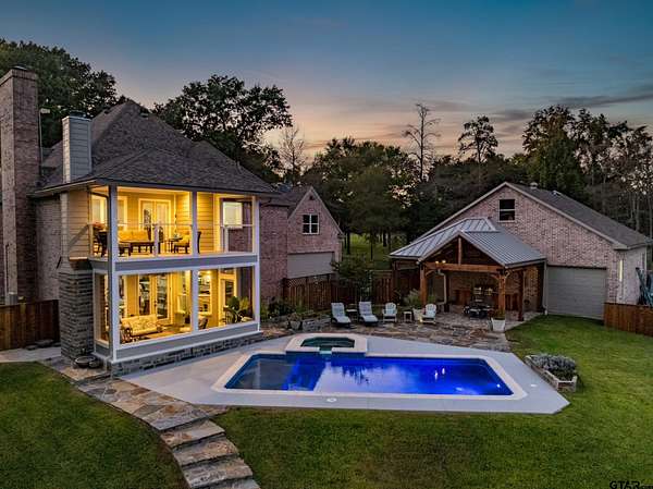 Welcome to 2001 Rose Pointe on Lake Athens, where lakeside luxury meets the tranquility of the countryside. Situated on 2.7 +/- acres in an exclusive gated community, this beautiful home was recently renovated in 2022 for modern comfort and enjoyment. This expansive property includes a finished out 35x35 climate controlled workshop, complete with loft, that provides abundant space for projects, tools, or parking your recreational toys, an ideal setup for hobbyists or outdoor enthusiasts. Step inside to a beautifully updated kitchen, dining, and living area, anchored by a cozy gas log fireplace. The home boasts two versatile secondary living spaces, a spacious office, and a primary suite with breathtaking lake views from a newly added covered balcony, perfect for morning coffee or evening sunsets. The screened in porch with fireplace seamlessly connects to the backyard entertainment area with heated gunite saltwater pool and spa surrounded by travertine coping, cool deck and flagstone decking. After a day on the lake or lounging by the pool, relax under the cedar pergola, complete with a built-in grill and custom cabinetry, or gather around the firepit for starry nights. Additional backyard features include an engineered drainage system and stone walkway that leads down to the boathouse. The boathouse is equipped with two boat slips ready for your bass boat or pontoon, and allows for easy access year round to the clean open waters of Lake Athens. Other thoughtful upgrades to the property include an irrigated flower garden with perimeter stone wall, a lake pump irrigation system and home generator that provides peace of mind in any weather. This exceptional property combines privacy and security with convenient access to local gems, including the East Texas Arboretum, Texas Freshwater Fisheries Center and the Athens Boathouse Bar and Grill, all just minutes away. Don't miss your chance to own this extraordinary property! Call me today for a tour.