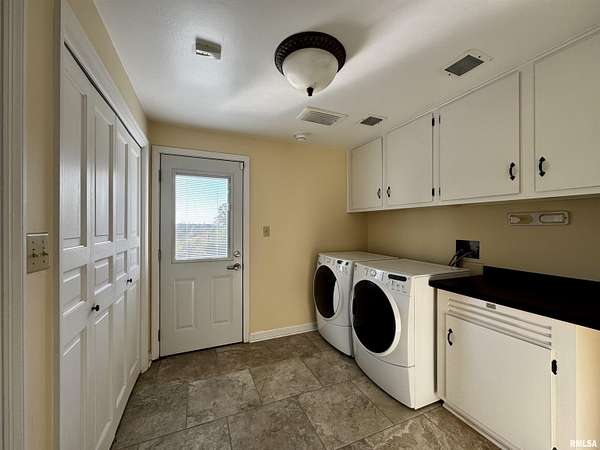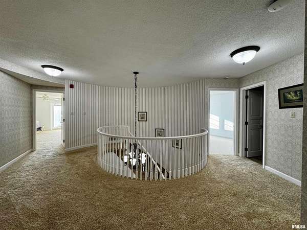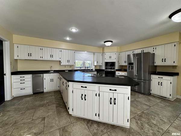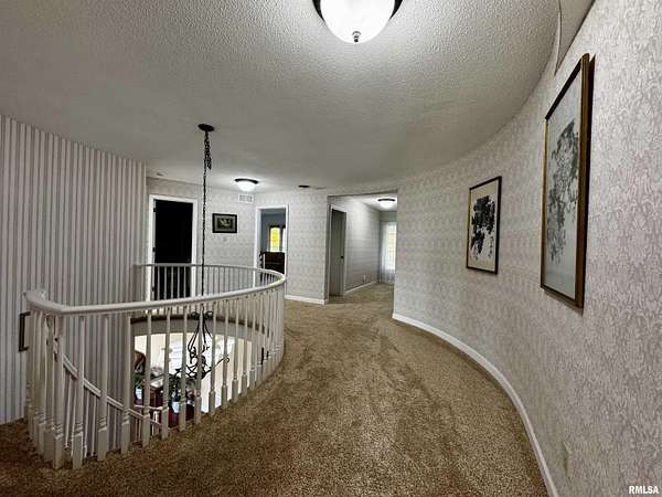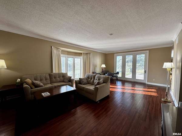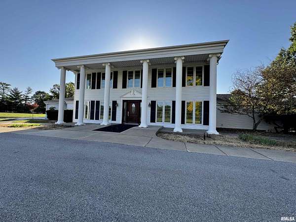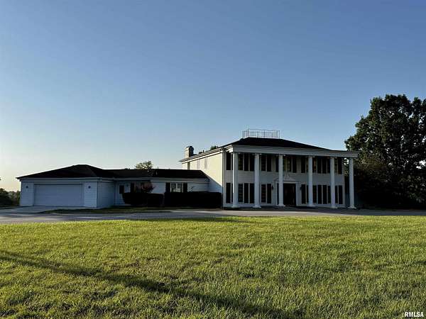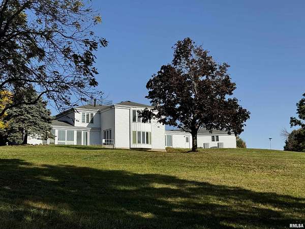 Available for the first time, this grand home is located on the north edge of Macomb, offering views of the Lamoine Valley and ten acres of land. With just over 6,000 sq ft of living space, the home offers spacious living areas and wonderful valley views. Driving up the circular driveway, you will be welcomed by the Southern style of the home and even more so by the large front foyer, which features a beautiful spiral stairway. The great room has a wall of windows with a walkout to a patio area, a den/family room with a fireplace and a walkout to the patio, a large home office or could be made into a bedroom, formal dining room large enough for all the holiday gatherings, large eat-in kitchen with updated appliances, pantry, powder room and lots of storage closets. This level also has the laundry/mud room and half bath off the oversized two-car attached garage. The upper level of this grand home has a primary suite with two walk-in closets and a large on-suite bath. The second bedroom suite has a private on-suite bath, and two more large bedrooms share a full bath. The lower level has a living room with a fireplace and walkout to a patio area, a game room, a half bath, and lots of storage. This home has many updates and a great space
